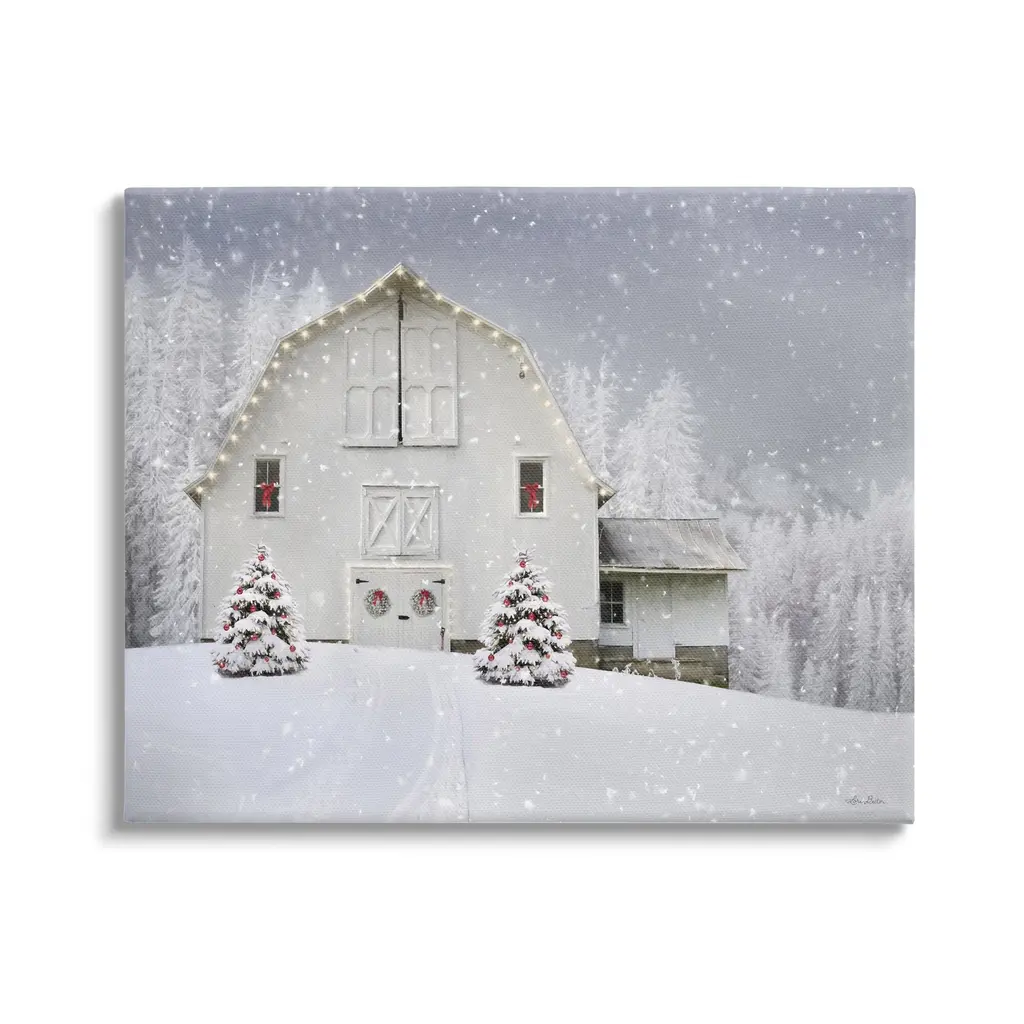 Stupell White Winter Snowfield Barn Cozy Christmas Scenery Framed Wall Art - Grey - 14 X 11 - White