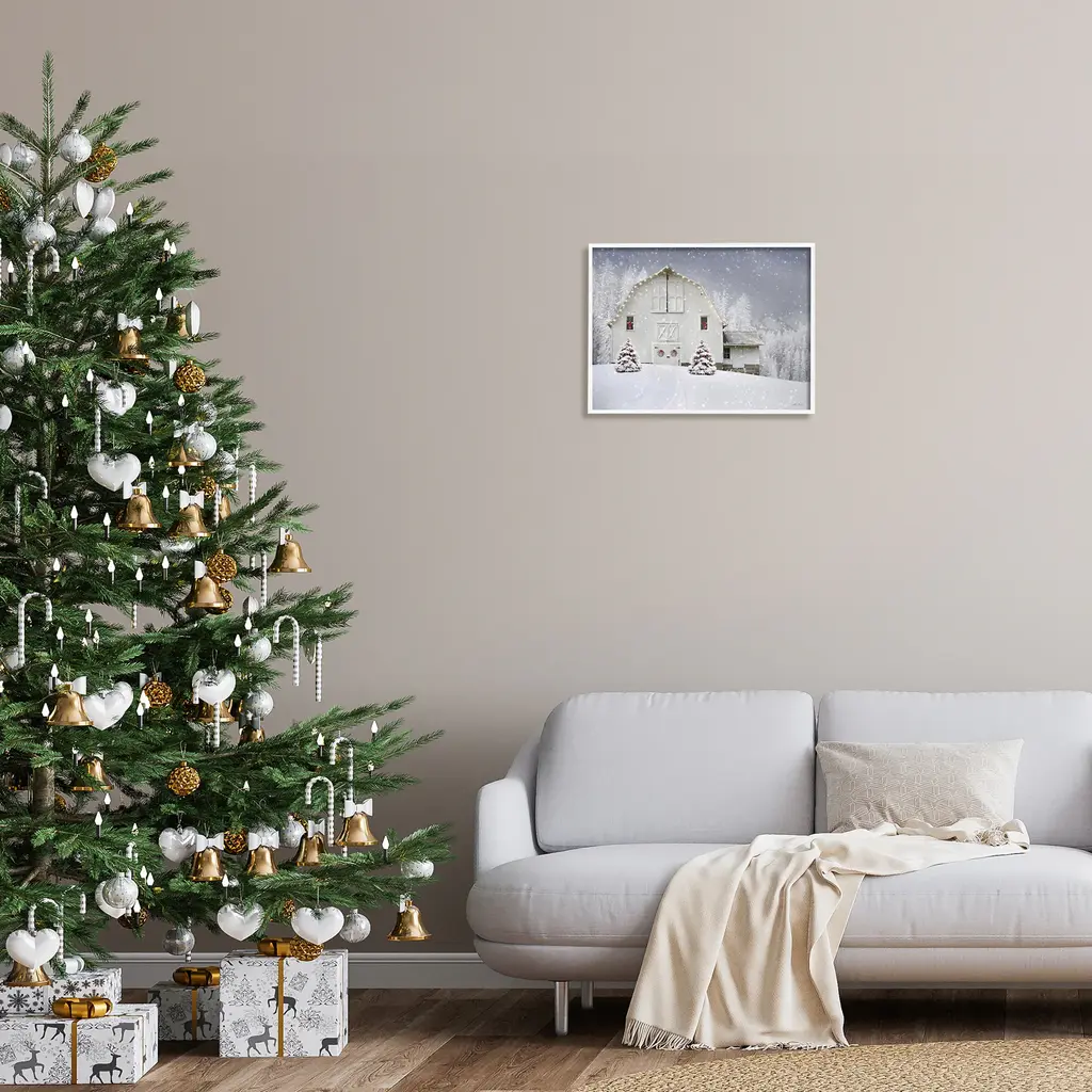 Stupell White Winter Snowfield Barn Cozy Christmas Scenery Framed Wall Art - Grey - 20 X 16 - White