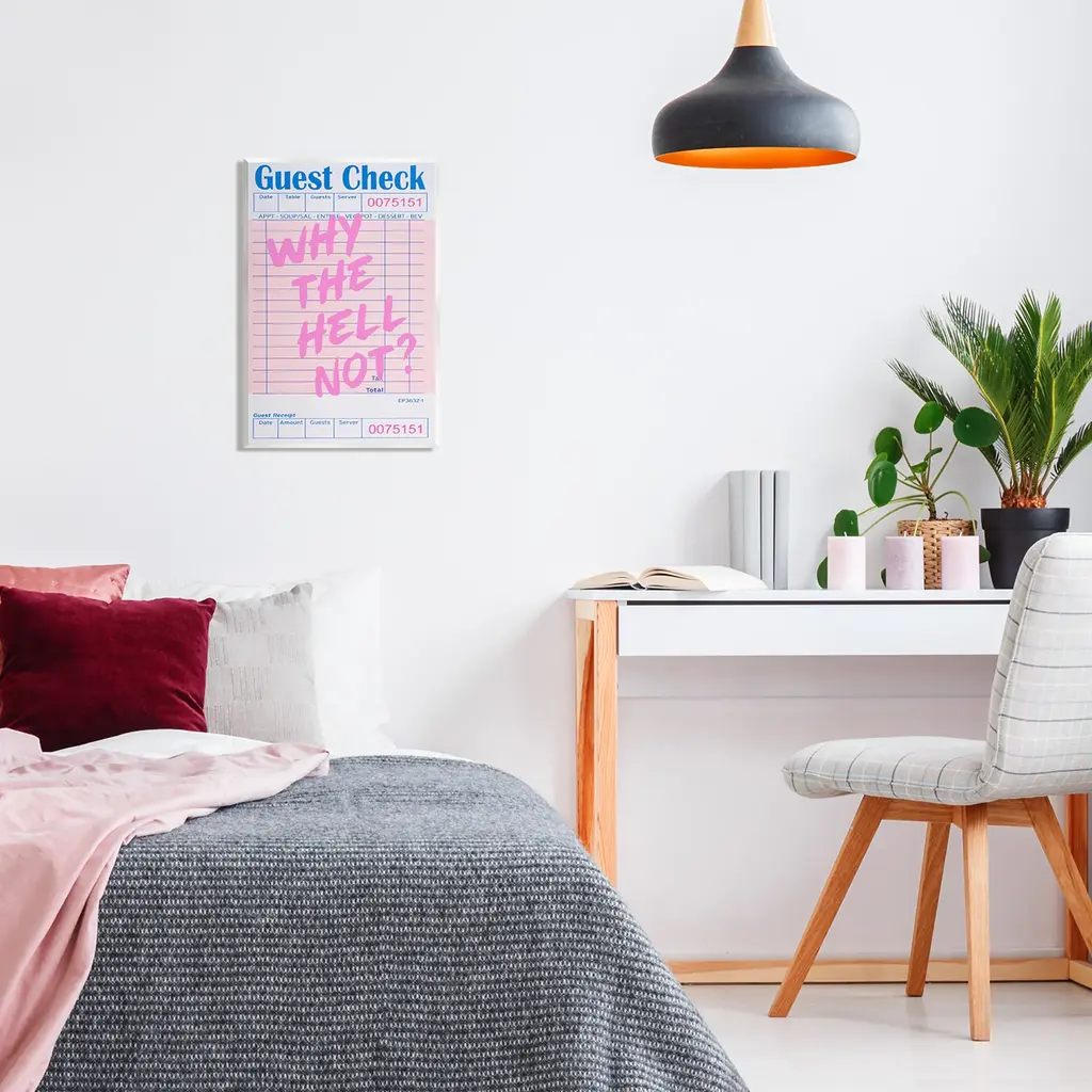 Our wall plaques start as high-quality lithograph prints mounted on durable 0.5-inch thick MDF wood. Each piece is hand finished and comes with a fresh layer of white foil on the sides to give it a crisp, clean look. Plaques arrive ready to hang without installation and come with removable plastic corners to keep them from damage in transit. Wall Art is made in the USA.Features: Dimensions: 10 x 0.5 x 15 InchesWall Plaque Sizes Include Standard: 10 x 0.5 x 15 Oversized: 13 x 0.5 x 19Wall Art is Ready to Hang with Hardware Free Hanging. No installation required. For Easy Set Up Lean or Layer Artwork on Shelf or Against Wall.All of our wall plaques start off as high quality lithograph prints that are then mounted on durable 0.5 inch thick MDF wood. Each piece is hand finished and comes with a fresh layer of foil on the sides to give it a crisp clean look. Made In USA.Artwork Relates To: Receipt, Vintage, Phrase, Why The Hell Not?Design by House of Lulu