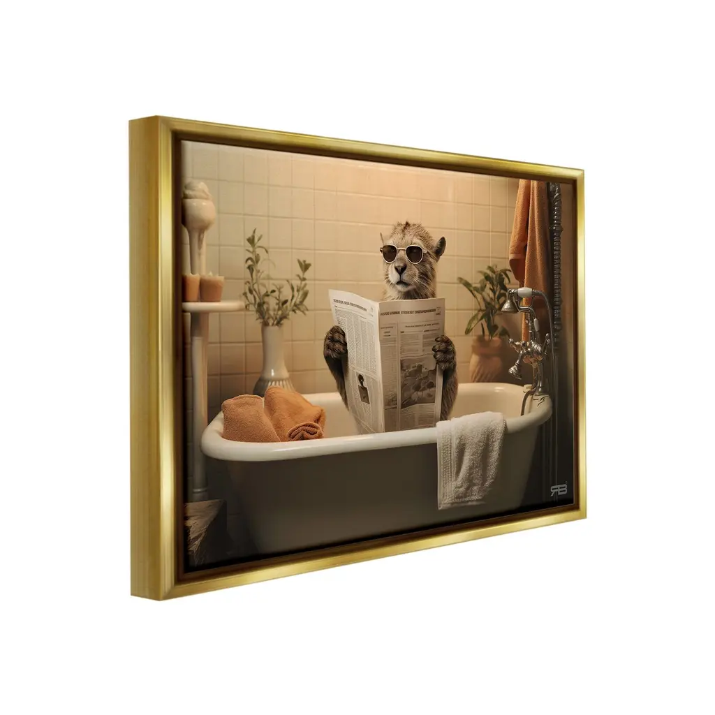 Stupell Wild Cat In Bathtub Framed Floater Canvas Wall Art Design By Rb - 21 X 17 - Gold
