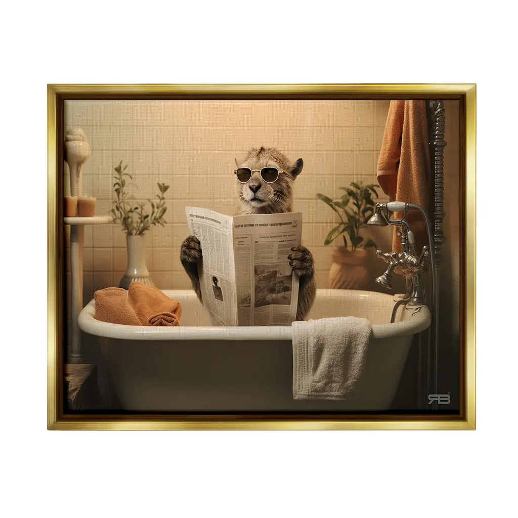 Stupell Wild Cat In Bathtub Framed Floater Canvas Wall Art Design By Rb - 31 X 25 - Brown