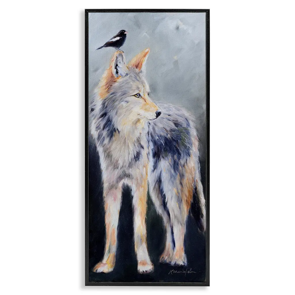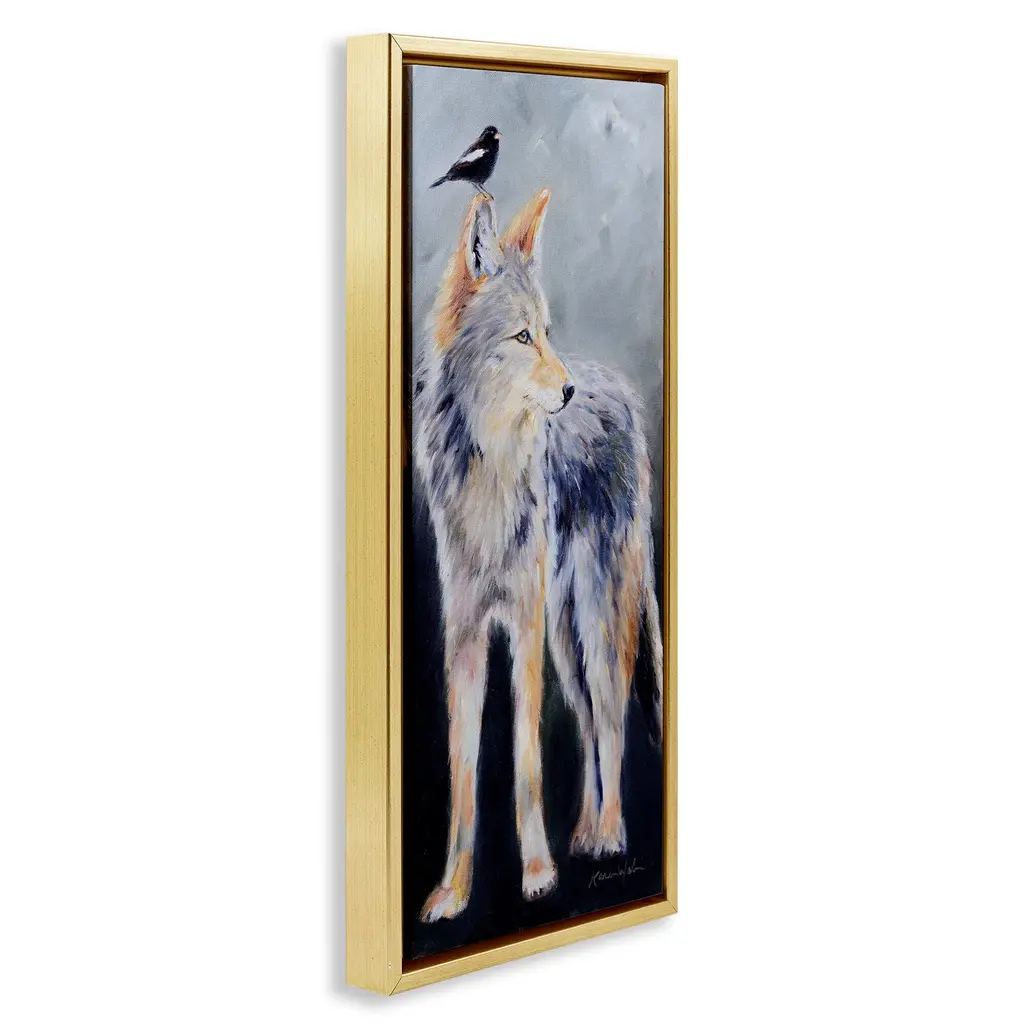 Stupell Wild Coyote & Black Bird Framed Floater Canvas Wall Art Design By Karen Weber Fine Art - 11 X 25 - Gold