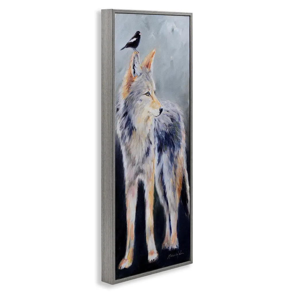 Stupell Wild Coyote & Black Bird Framed Giclee Art Design By Karen Weber Fine Art - 13 X 30 - Grey