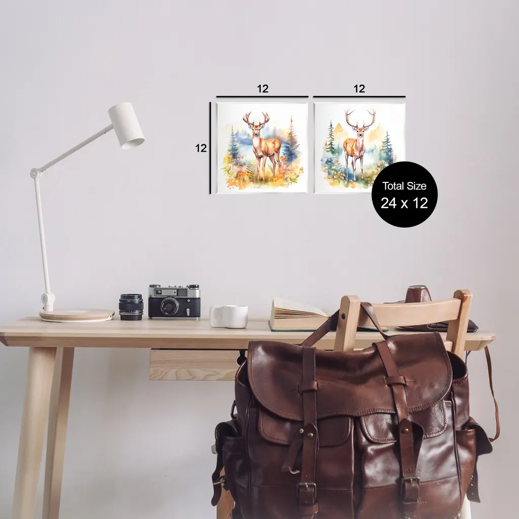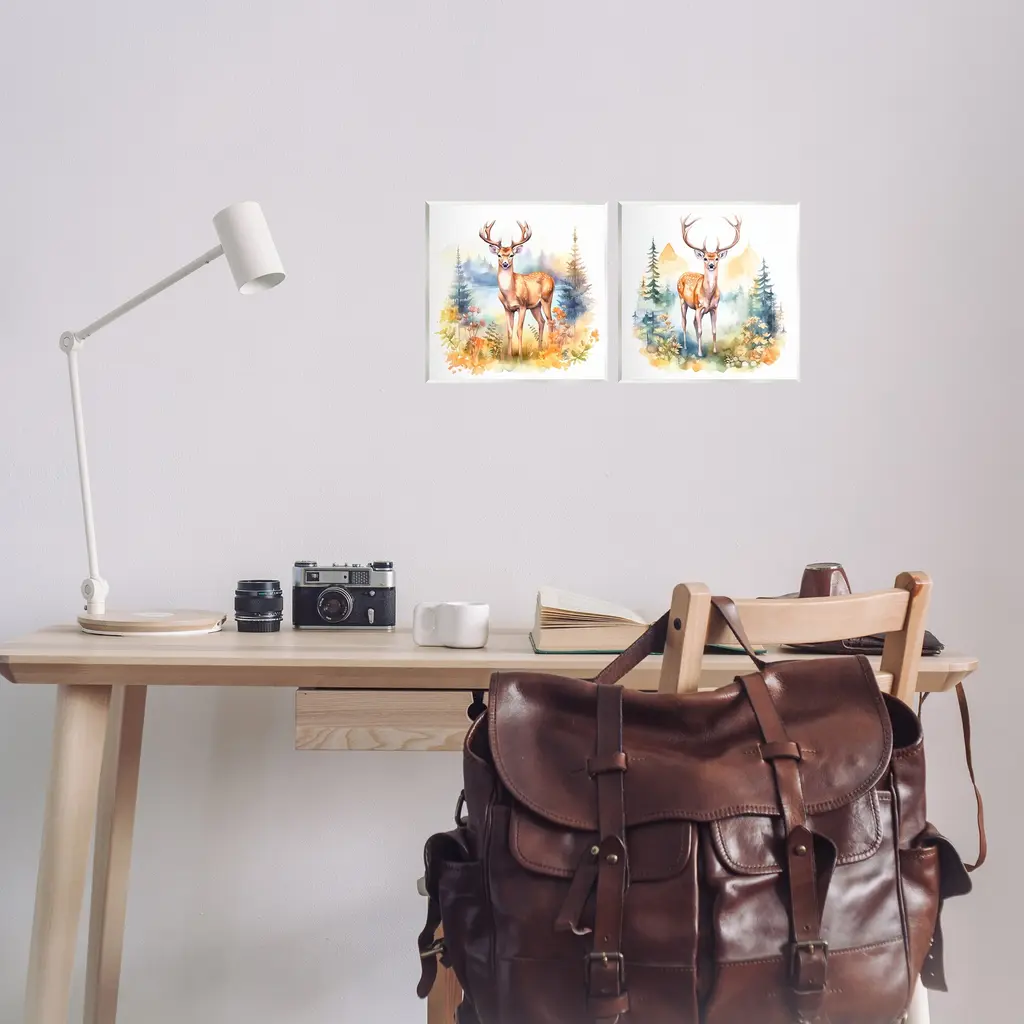 Fill any space with Stupell Wall Art Sets. Our wall plaques start as high-quality lithograph prints mounted on durable 0.5-inch thick MDF wood. Each piece is hand finished and comes with a fresh layer of white foil on the sides to give it a crisp, clean look. Plaques arrive ready to hang without installation and come with removable plastic corners to keep them from damage in transit. Stupell Wall Art is made in the USA.Features: Dimensions: 2 Piece Set, Each Panel is 12 x 0.5 x 12 InchesWall Art is Ready to Hang with Hardware Free Hanging. No Installation required. For Easy Set Up Lean or Layer Artwork on Shelf or Against Wall. Artwork is Permently Fixed into the Frame.All of our wall plaques start off as high quality lithograph prints that are then mounted on durable 0.5 inch thick MDF wood. Each piece is hand finished and comes with a fresh layer of foil on the sides to give it a crisp clean look. Made In USA.Artwork Relates To: Landscape, Nature, Mountain, Lake, Trees, Forest, Animal, DeerDesign by Andrea Haase