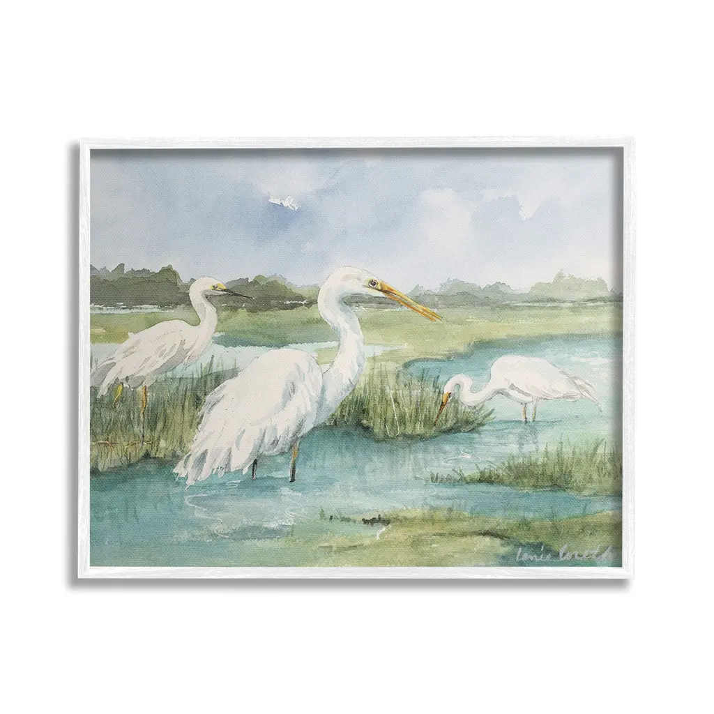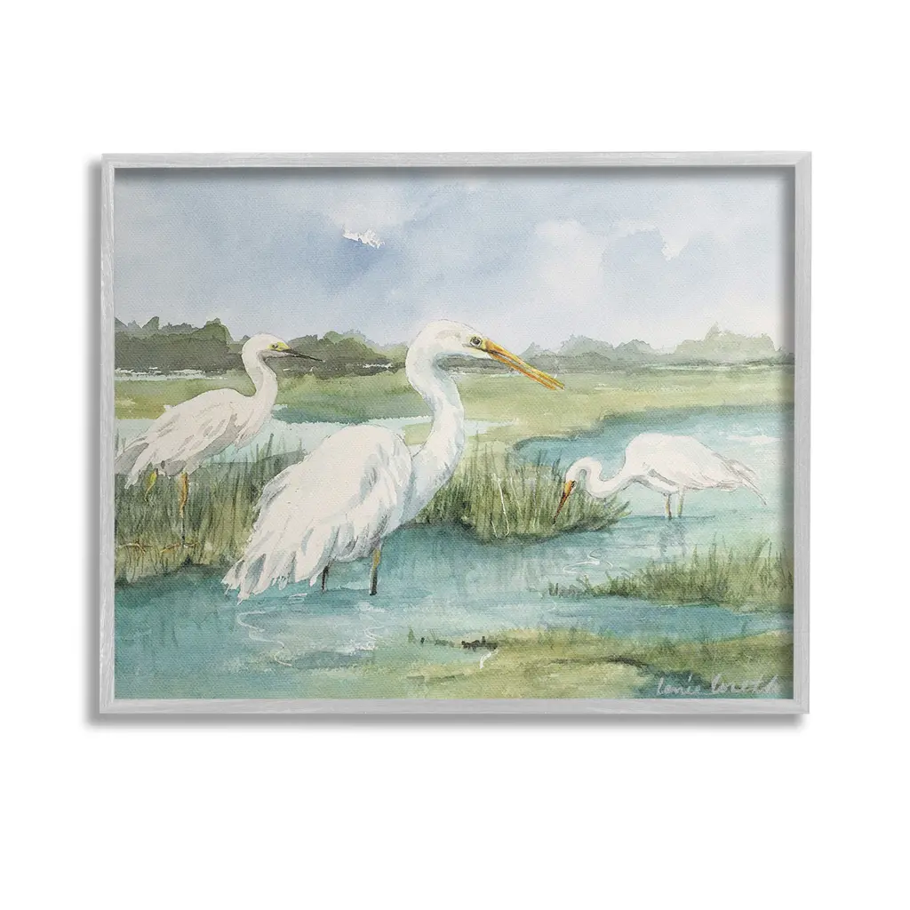Stupell Wild Egrets In Marshland Framed Giclee Art Design By Lanie Loreth - 30 X 24 - Grey