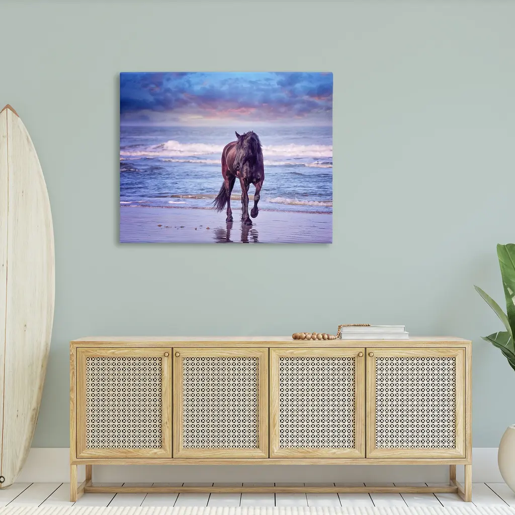 Stupell Wild Horse On Beach Colorful Blue Sunset Canvas Wall Art - 36 X 48