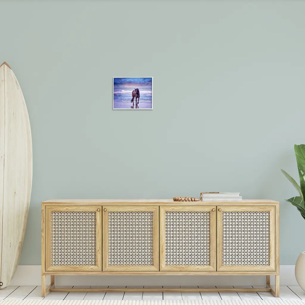 Stupell Wild Horse On Beach Colorful Blue Sunset Framed Giclee Texturized Art By Phburchett - 11 X 14 - White