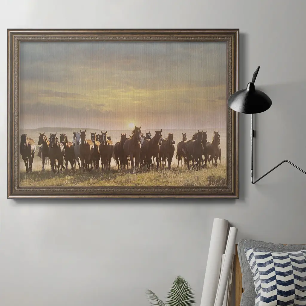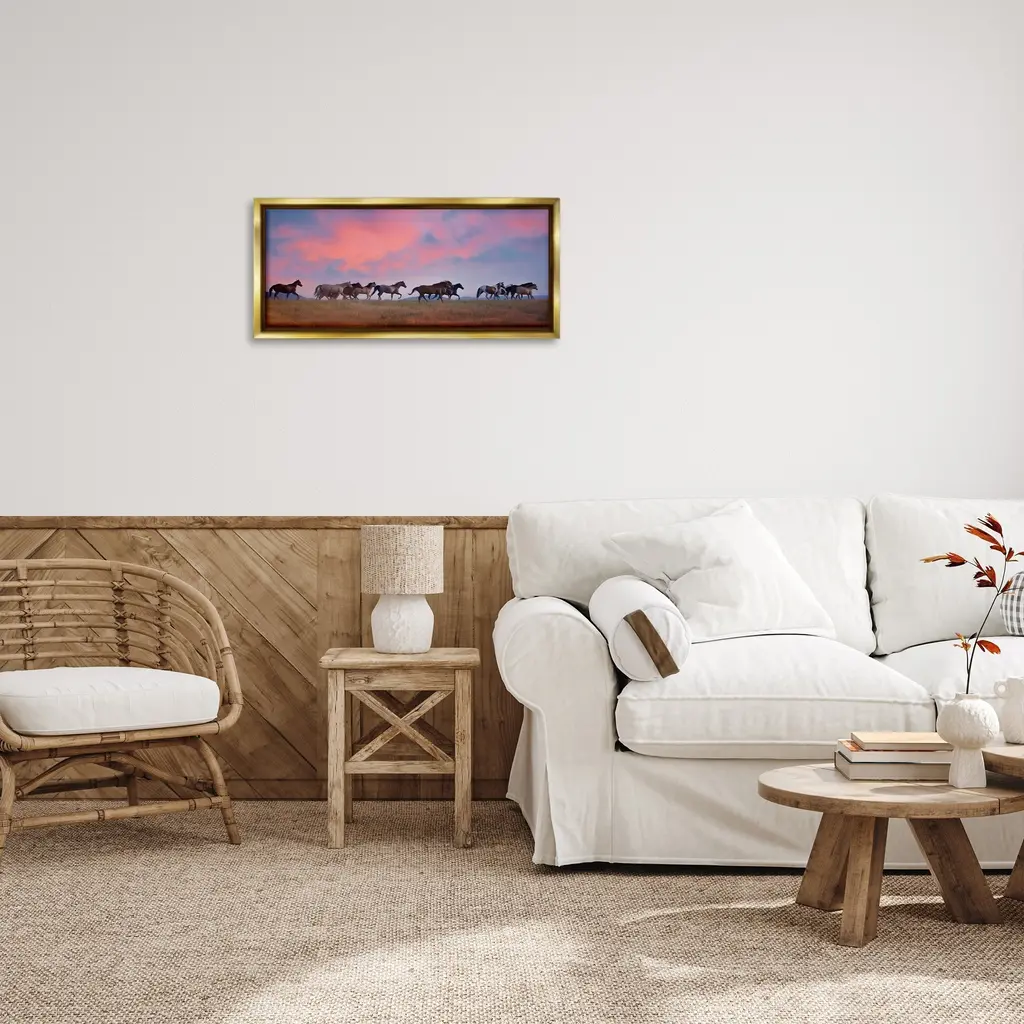 Stupell Wild Horses At Sunset Framed Floater Canvas Wall Art Design By Phburchett - 25 X 11 - Gold