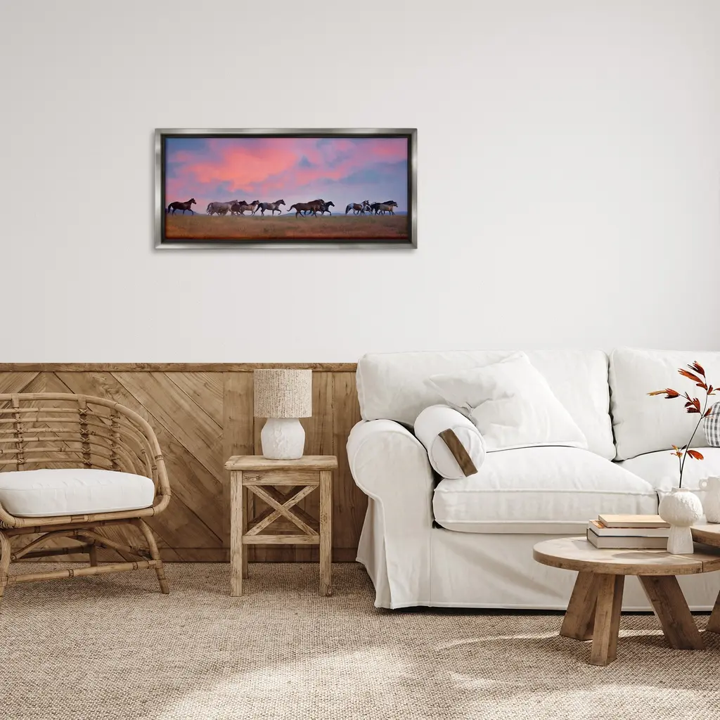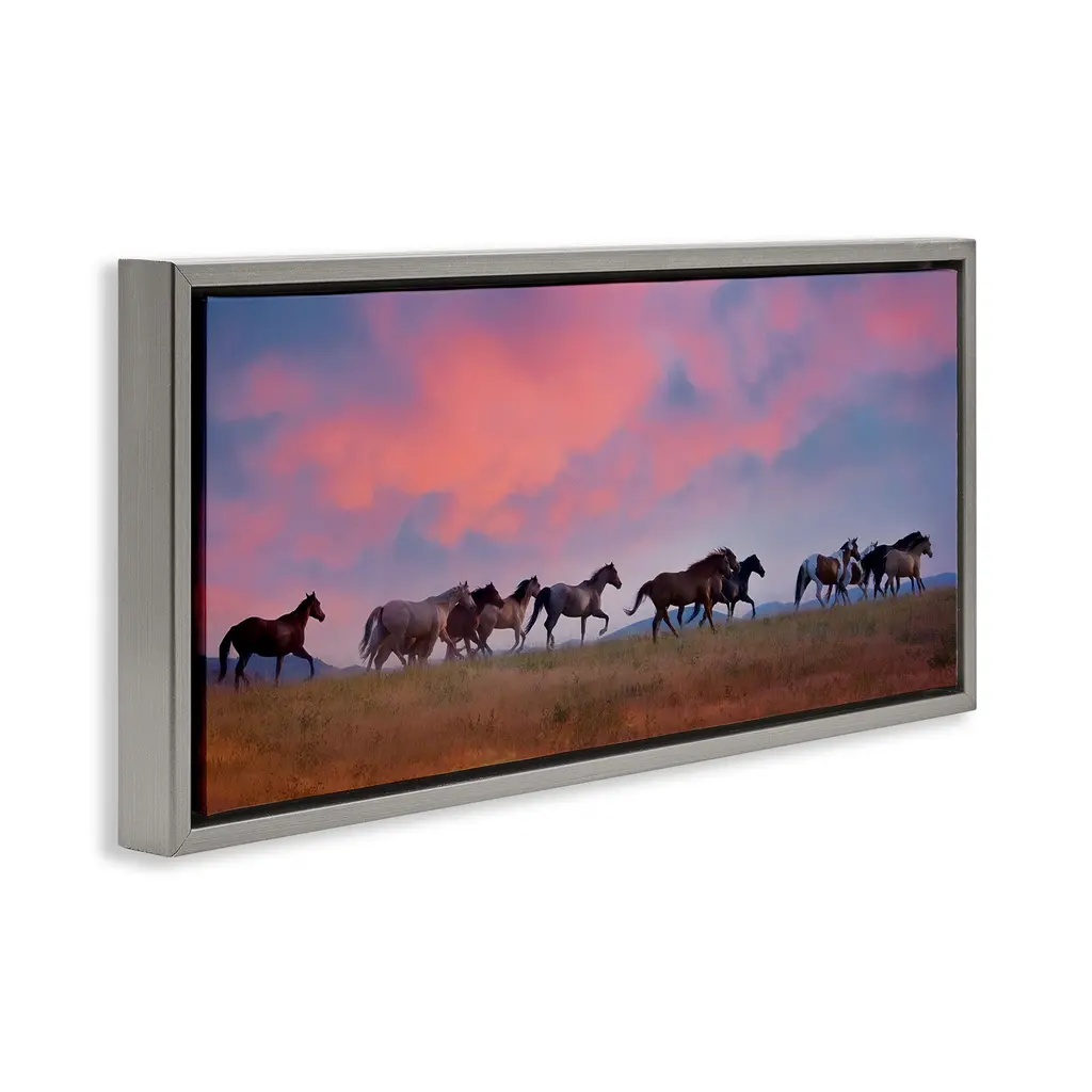 Stupell Wild Horses At Sunset Framed Floater Canvas Wall Art Design By Phburchett - 31 X 14 - Grey