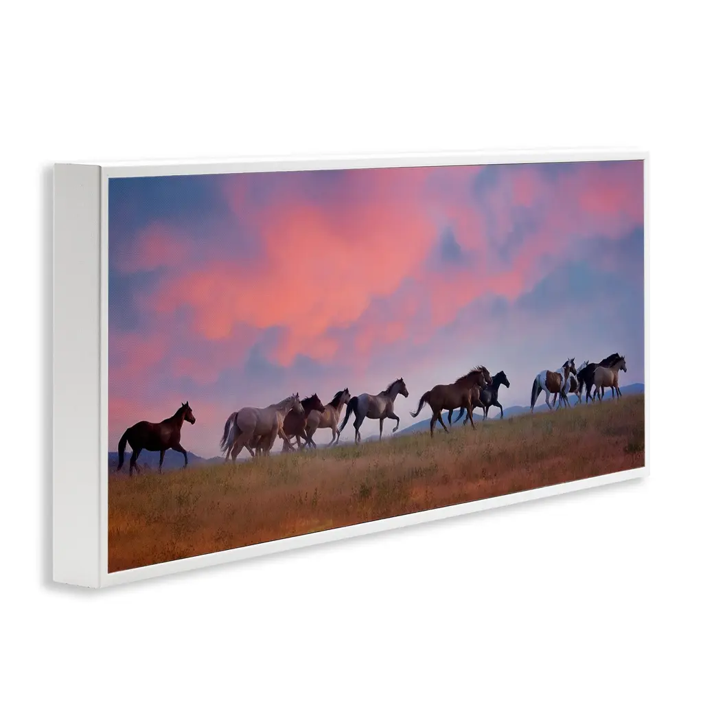 Stupell Wild Horses At Sunset Framed Giclee Art Design By Phburchett - 30 X 13 - White