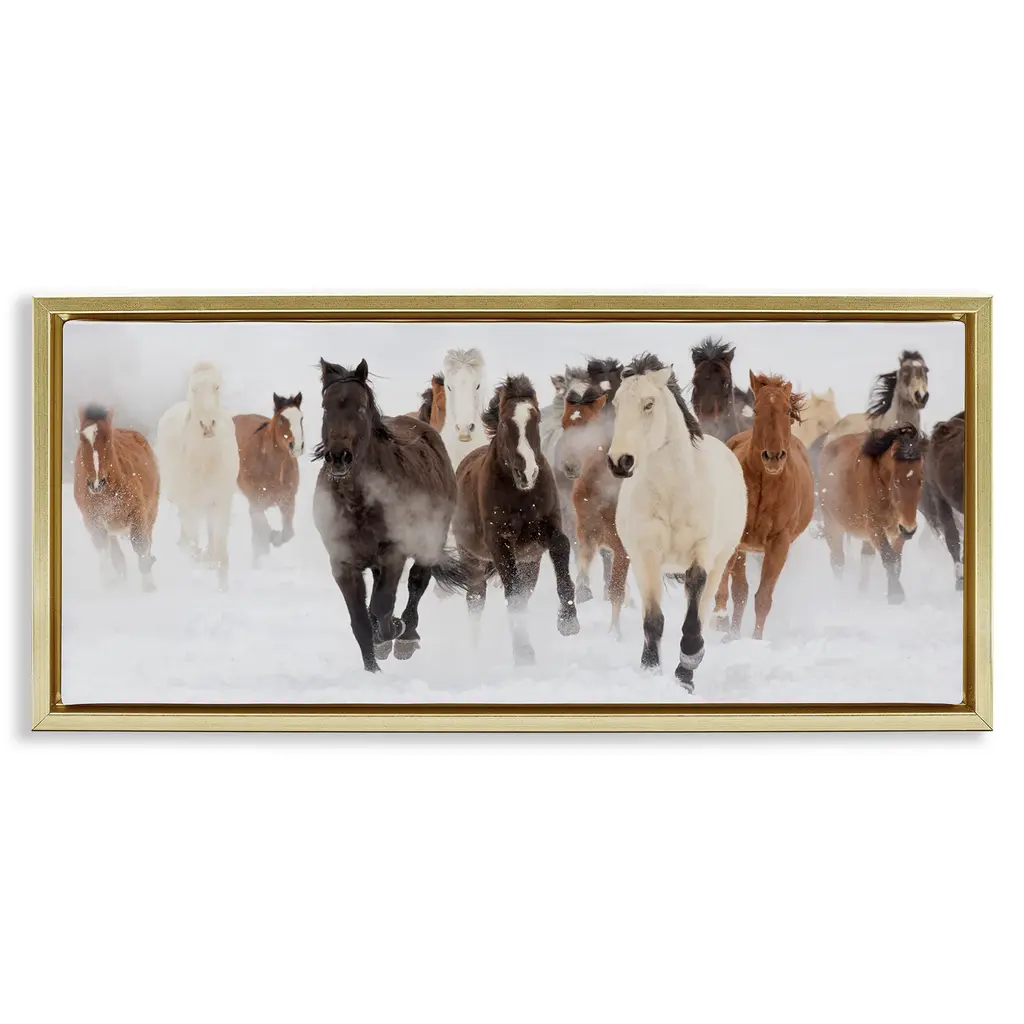 Stupell Wild Horses Herd Foggy Winter Day Running Snow Painting Canvas Wall Art - 10 X 24