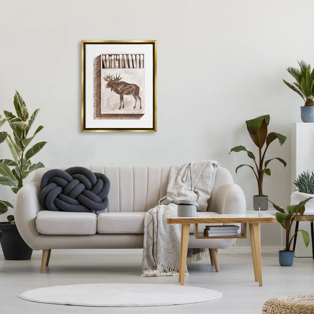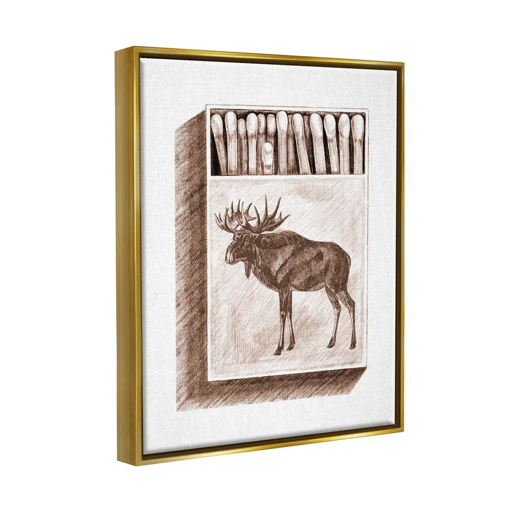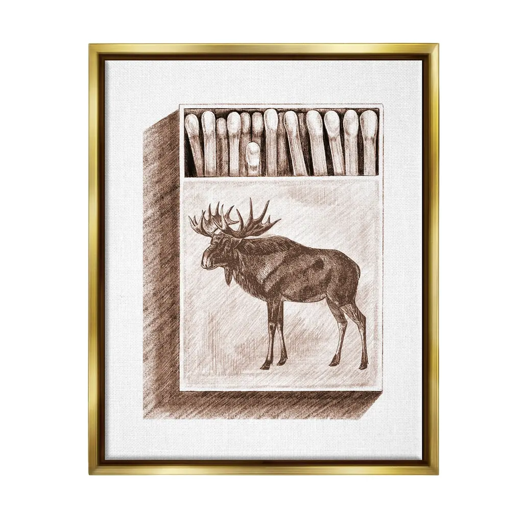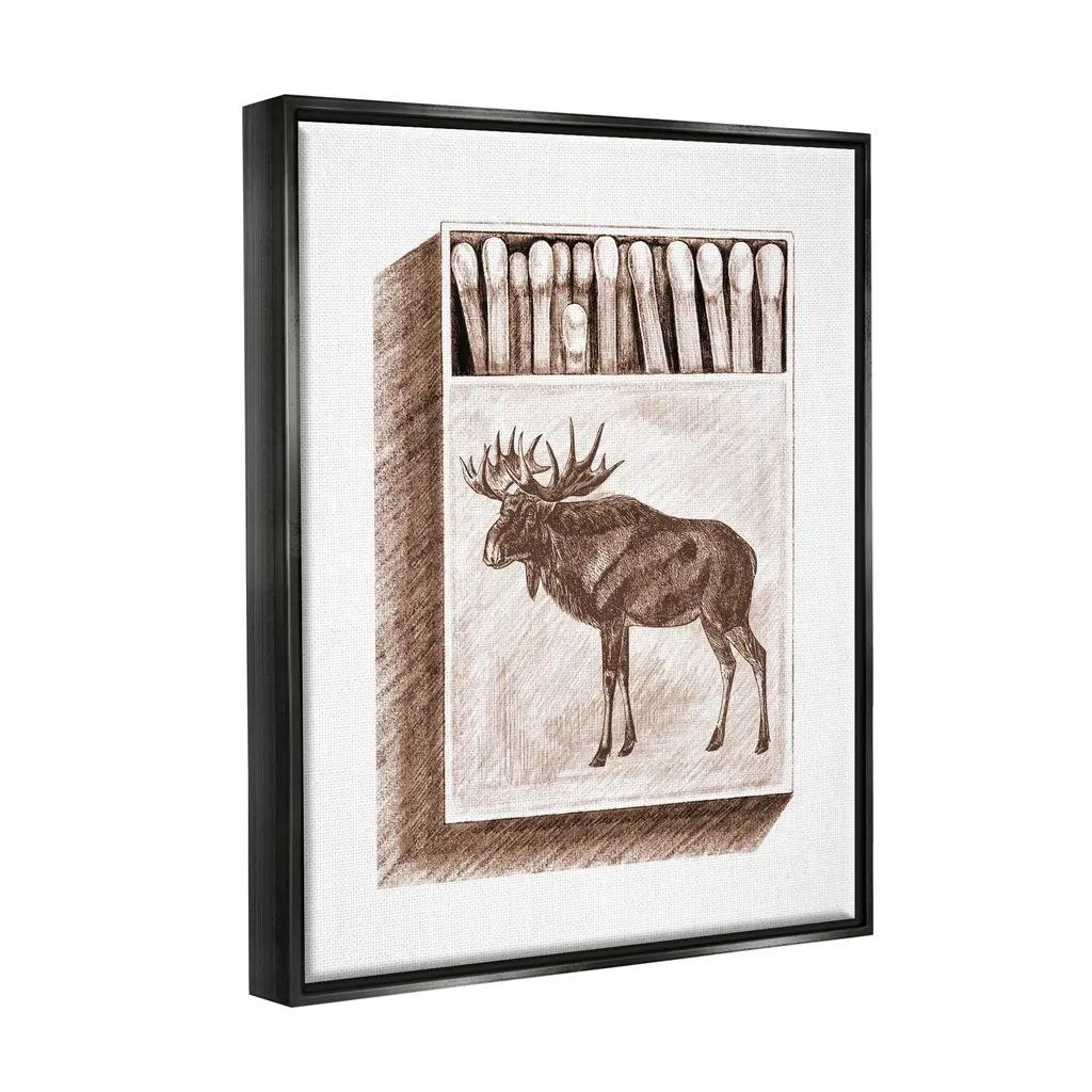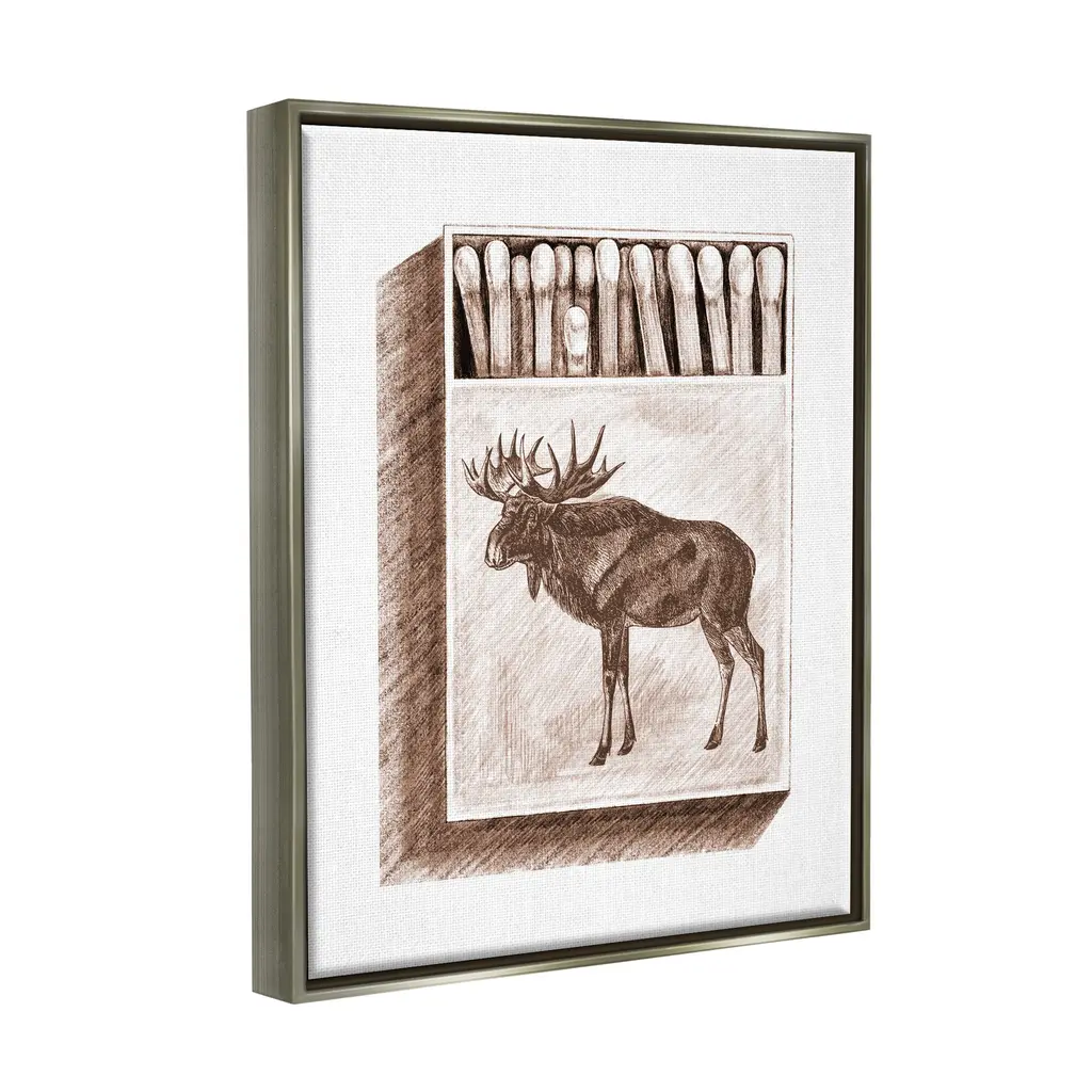 Elevate your home or office to the next level with Stupell Framed Floating Canvas Wall Art. Our premium hand-stretched canvas is mounted securely into a sturdy lightweight frame. The museum-style gap between the wrapped canvas and the box frame gives the illusion of floating artwork. Stupell Wall Art is made in the USA.Features: Dimensions: 17 x 1.7 x 21 Frame, 16 x 1.5 x 20 Canvas ArtFloating Frame Sizes Include Standard: 17 x 1.7 x 21 Oversized: 25 x 1.7 x 31Wall Art is Ready to Hang - No Installation or Hardware Needed. For Easy Set Up Lean or Layer Artwork on Shelf or Against Wall.Our elevated 1.7" Thick Floating Frame is the perfect complement to our canvas style Wall Art. We use only the highest quality inks in house with industry leading printing solutions. Canvas is hand stretched over a durable wood foundation and then mounted securly into a Modern Box Frame. Made in the USA.Artwork Relates To: Drawing, Matchbook, Moose, WildlifeDesign by Lil' Rue