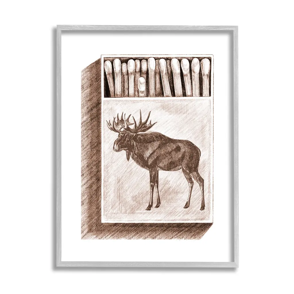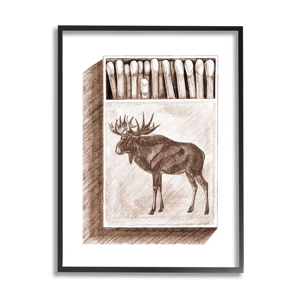 Add dimension to any room with our textured Framed Giclee Artwork. Our framed artwork is securely mounted into a 1.5-inch thick wood grain frame and ready to hang. Frames are available in three alluring styles: black, gray farmhouse and white. In addition, you should check out our oversized options if you want a statement piece. Stupell Wall Art is made in the USA.Features: Dimensions: 11 x 1.5 x 14 FramedFramed Giclee Sizes Include Standard: 11 x 1.5 x 14 Large: 16 x 1.5 x 20 Oversized: 24 x 1.5 x 30Wall Art is Ready to Hang - No Installation or Hardware Needed. For Easy Set Up Lean or Layer Artwork on Shelf or Against Wall.Our giclée prints are carefully mounted on a durable MDF backing, and then perfectly finished in a 1.5 inch thick woodgrain frame. Mounted frame colors include black, gray farmhouse and white. Made In USA.Artwork Relates To: Drawing, Matchbook, Moose, WildlifeDesign by Lil' Rue