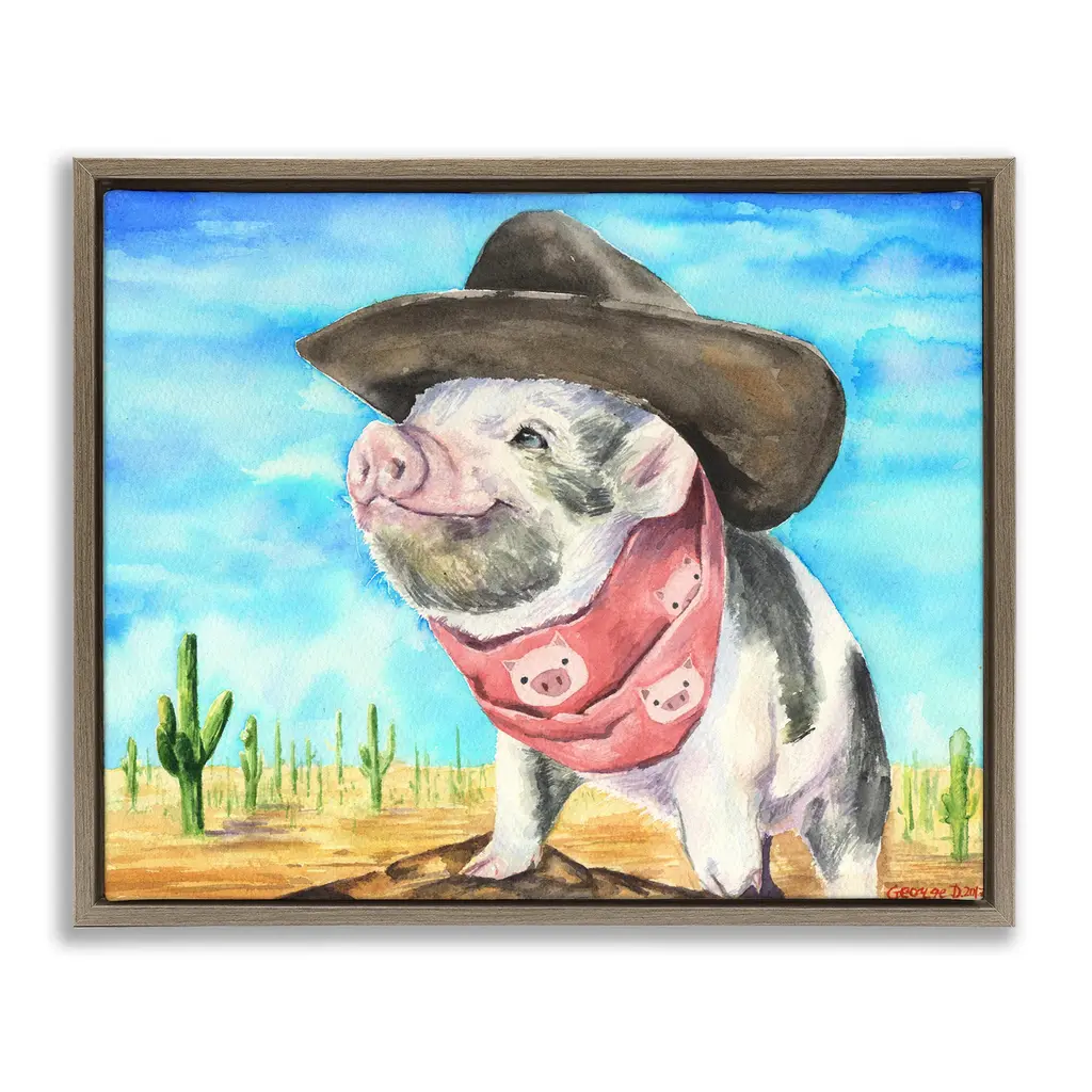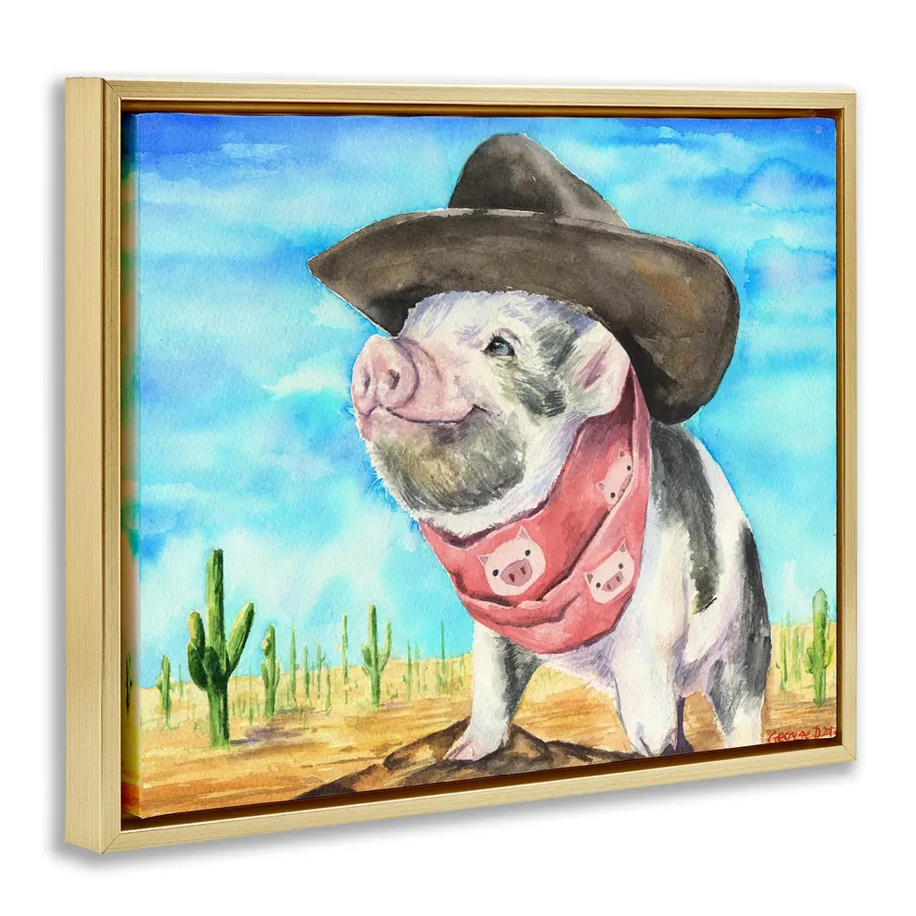 Elevate your home or office to the next level with Stupell Framed Floating Canvas Wall Art. Our premium hand-stretched canvas is mounted securely into a sturdy lightweight frame. The museum-style gap between the wrapped canvas and the box frame gives the illusion of floating artwork. Stupell Wall Art is made in the USA.Features: Dimensions: 21 x 1.7 x 17 Frame, 20 x 1.5 x 16 Canvas ArtFloating Frame Canvas Products are available in sizes 21"x17" and 31"x25". All Floating Frame Canvas Products have a 1.7" Depth.Wall Art is Ready to Hang with Hardware Free Hanging. No Installation required. For Easy Set Up Lean or Layer Artwork on Shelf or Against Wall. Artwork is Permently Fixed into the Frame.Our elevated 1.7" Thick Floating Frame is the perfect complement to our canvas style Wall Art. We use only the highest quality inks in house with industry leading printing solutions. Canvas is hand stretched over a durable wood foundation and then mounted securly into a Modern Box Frame. Made in the USA.Artwork Relates To: Animal, Landscape, Desert, Southwestern, Cowboy, Farm, PigDesign by George Dyachenko