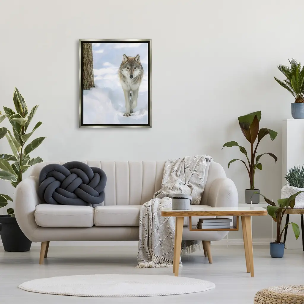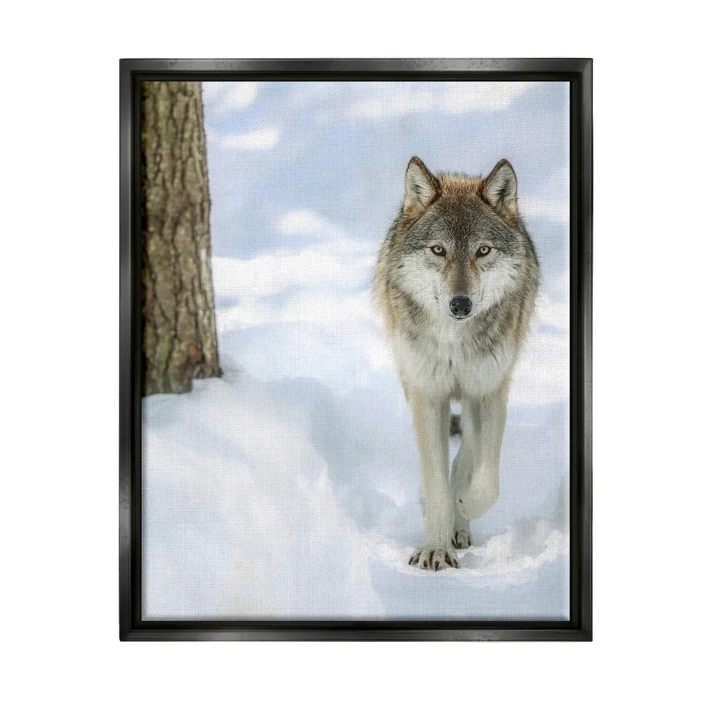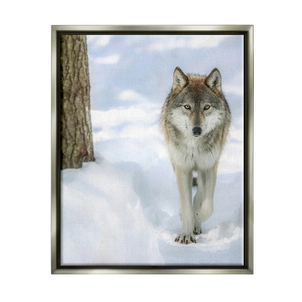 Elevate your home or office to the next level with Stupell Framed Floating Canvas Wall Art. Our premium hand-stretched canvas is mounted securely into a sturdy lightweight frame. The museum-style gap between the wrapped canvas and the box frame gives the illusion of floating artwork. Stupell Wall Art is made in the USA.Features: Dimensions: 17 x 1.7 x 21 Frame, 16 x 1.5 x 20 Canvas ArtFloating Frame Sizes Include Standard: 17 x 1.7 x 21 Oversized: 25 x 1.7 x 31Wall Art is Ready to Hang - No Installation or Hardware Needed. For Easy Set Up Lean or Layer Artwork on Shelf or Against Wall.Our elevated 1.7" Thick Floating Frame is the perfect complement to our canvas style Wall Art. We use only the highest quality inks in house with industry leading printing solutions. Canvas is hand stretched over a durable wood foundation and then mounted securly into a Modern Box Frame. Made in the USA.Artwork Relates To: Animal, Mammal, Wolf, Canine, Coyote, Wildlife, Snow, Winter, WoodlandDesign by Carrie Ann Grippo-Pike