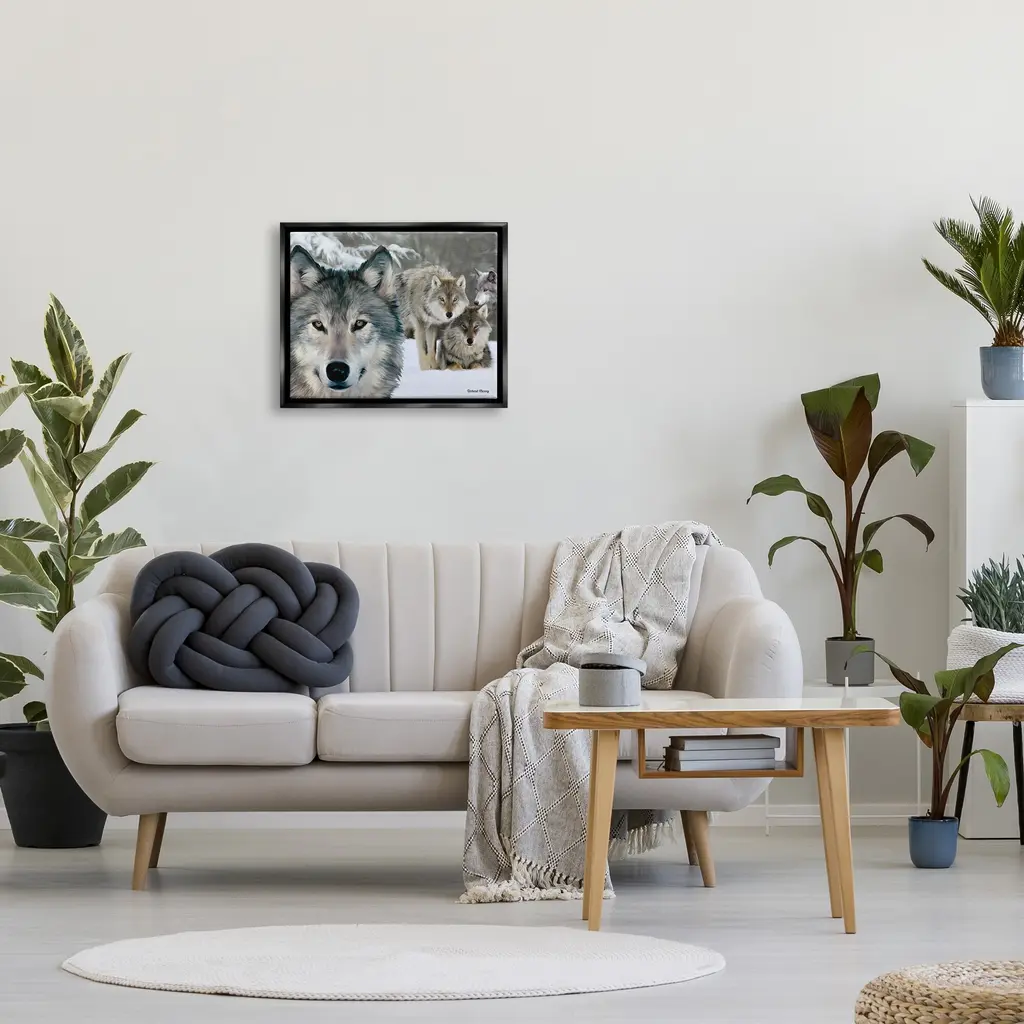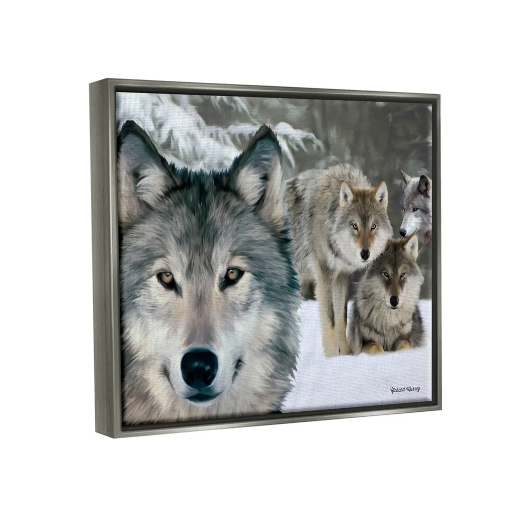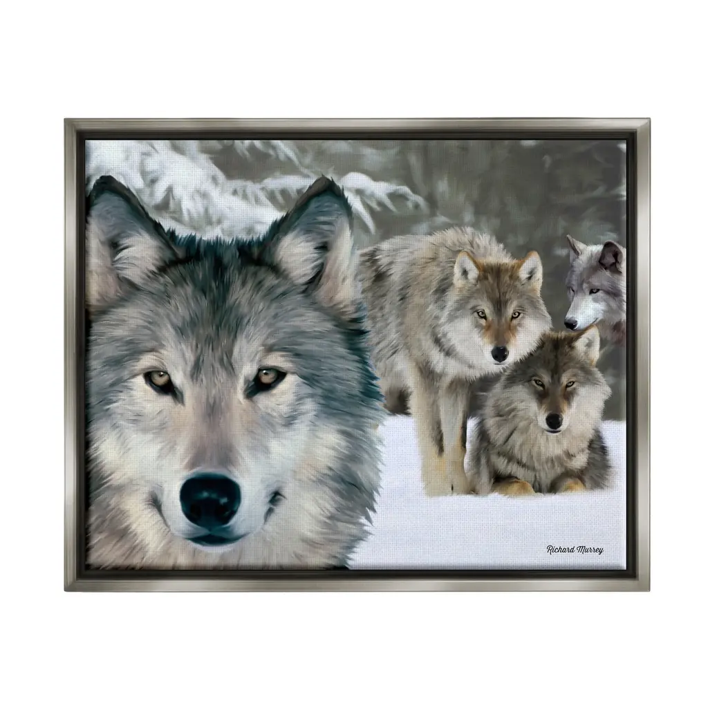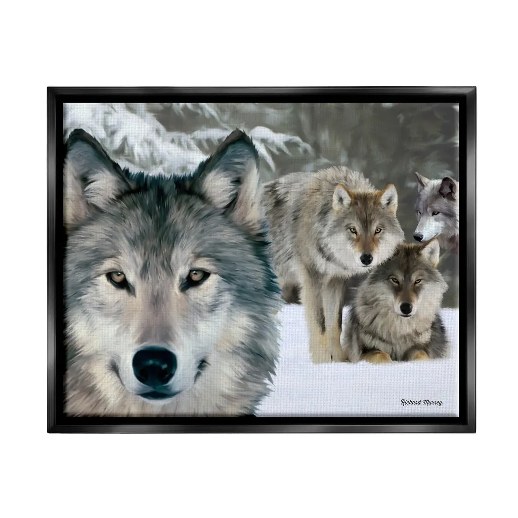 Elevate your home or office to the next level with Stupell Framed Floating Canvas Wall Art. Our premium hand-stretched canvas is mounted securely into a sturdy lightweight frame. The museum-style gap between the wrapped canvas and the box frame gives the illusion of floating artwork. Stupell Wall Art is made in the USA.Features: Dimensions: 21 x 1.7 x 17 Frame, 20 x 1.5 x 16 Canvas ArtFloating Frame Sizes Include Standard: 21 x 1.7 x 17 Oversized: 31 x 1.7 x 25Wall Art is Ready to Hang - No Installation or Hardware Needed. For Easy Set Up Lean or Layer Artwork on Shelf or Against Wall.Our elevated 1.7" Thick Floating Frame is the perfect complement to our canvas style Wall Art. We use only the highest quality inks in house with industry leading printing solutions. Canvas is hand stretched over a durable wood foundation and then mounted securly into a Modern Box Frame. Made in the USA.Artwork Relates To: Animal, Mammal, Wolf, Canine, Nature, Snow, Landscape, WildlifeDesign by Richard Murrey