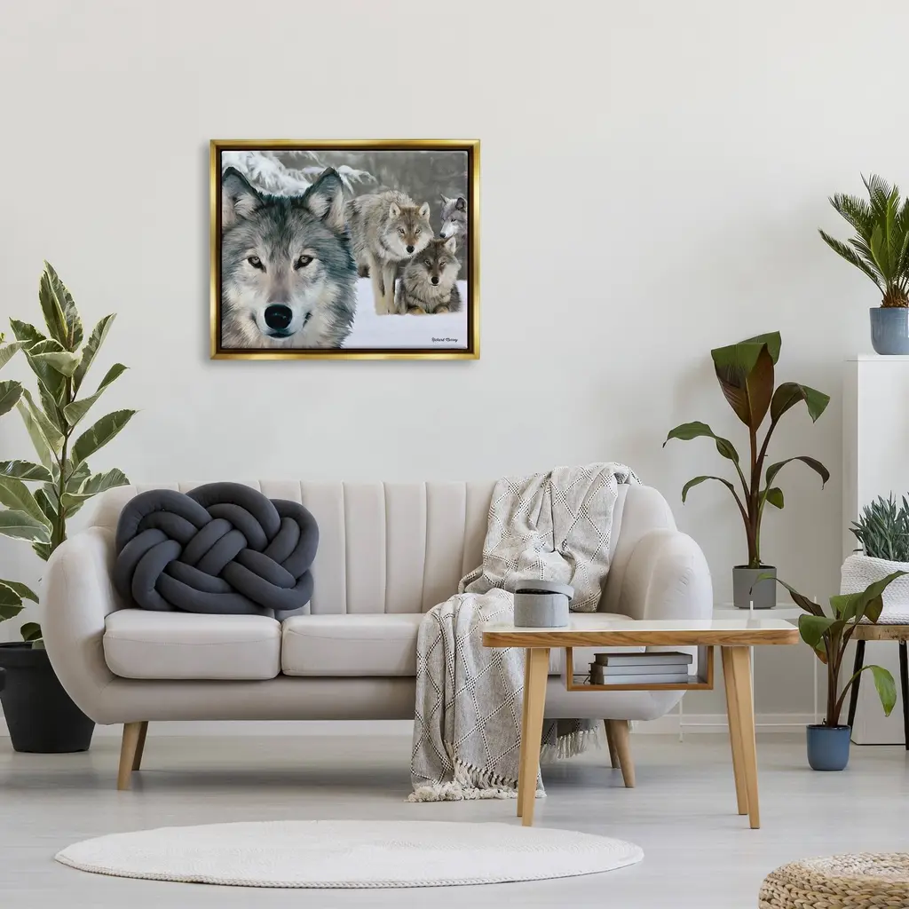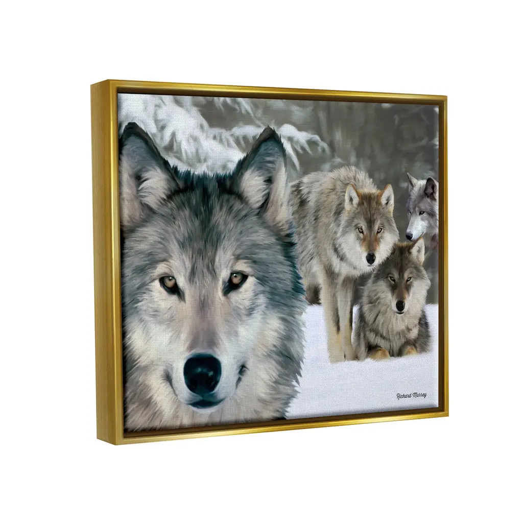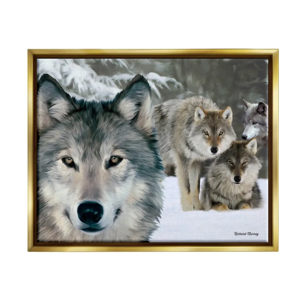 Stupell Wild Wolves Snowy Winter Landscape Framed Floater Canvas Wall Art By Richard Murrey - 20 X 16 - Gold