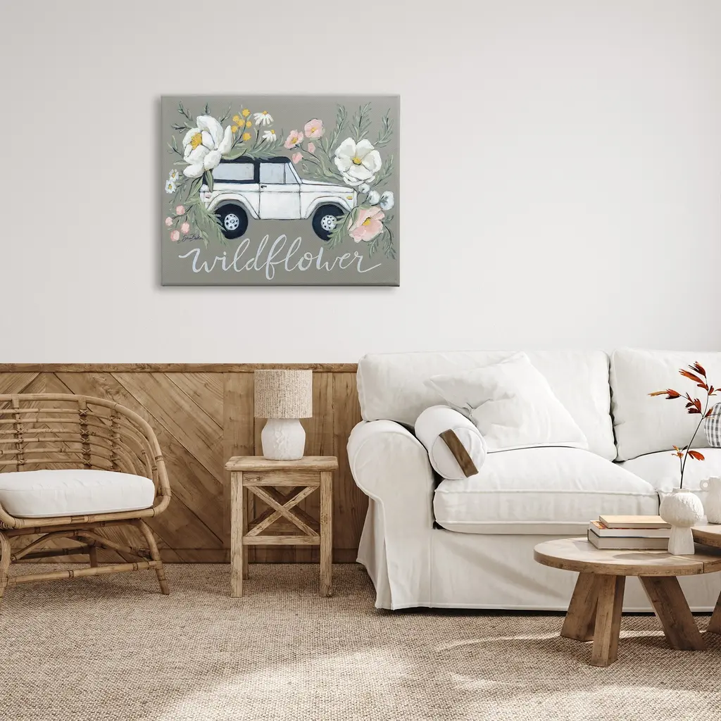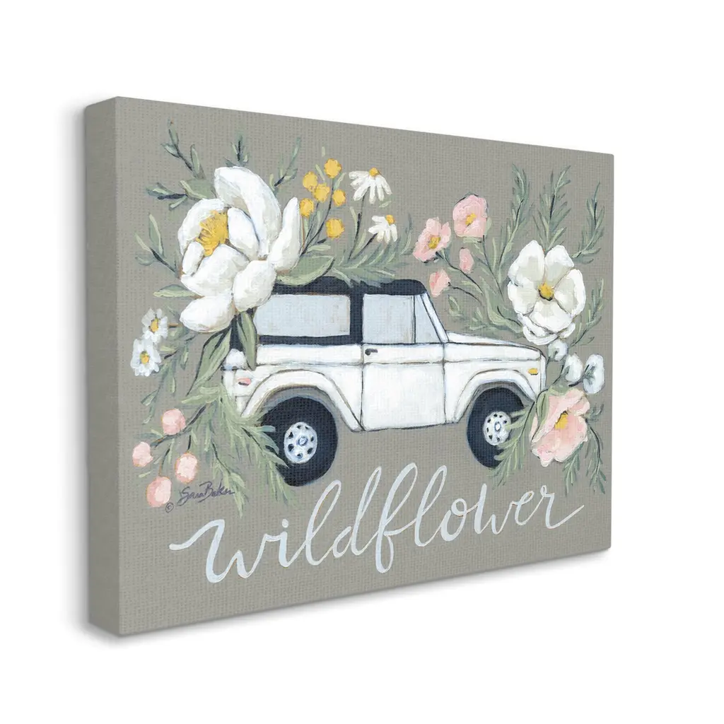 We create our stretched canvas to the highest standards. Using only the highest quality inks and canvas on Mimaki printers, we hand-cut and stretch each piece over a 1.5-inch thick wooden frame for hanging. As a result, the art comes ready to hang on the sturdy ledge with no installation required. Stupell Wall Art is made in the USA.Features: Dimensions: 20 x 1.5 x 16 InchesStretched Canvas Sizes Include Standard: 20 x 1.5 x 16 Large: 30 x 1.5 x 20 X-Large: 40 x 1.5 x 30 Oversized: 48 x 1.5 x 36Wall Art is Ready to Hang with Hardware Free Hanging. No installation required. For Easy Set Up Lean or Layer Artwork on Shelf or Against Wall.Our stretched canvas is created with the highest standards. We use only the highest quality inks and canvas on our in house Mimaki printers, and then hand cut and stretch each piece over a 1.5 inch thick wooden frame for hanging. Made In USA.Artwork Relates To: Floral, Pattern, Flower, Plant, Rose, Petal, Herbs, Car, Truck, WildflowerDesign by Sara Baker