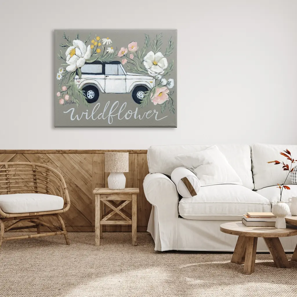 Stupell Wildflower Phrase Floral Car Canvas Wall Art Design By Sara Baker - 48 X 36