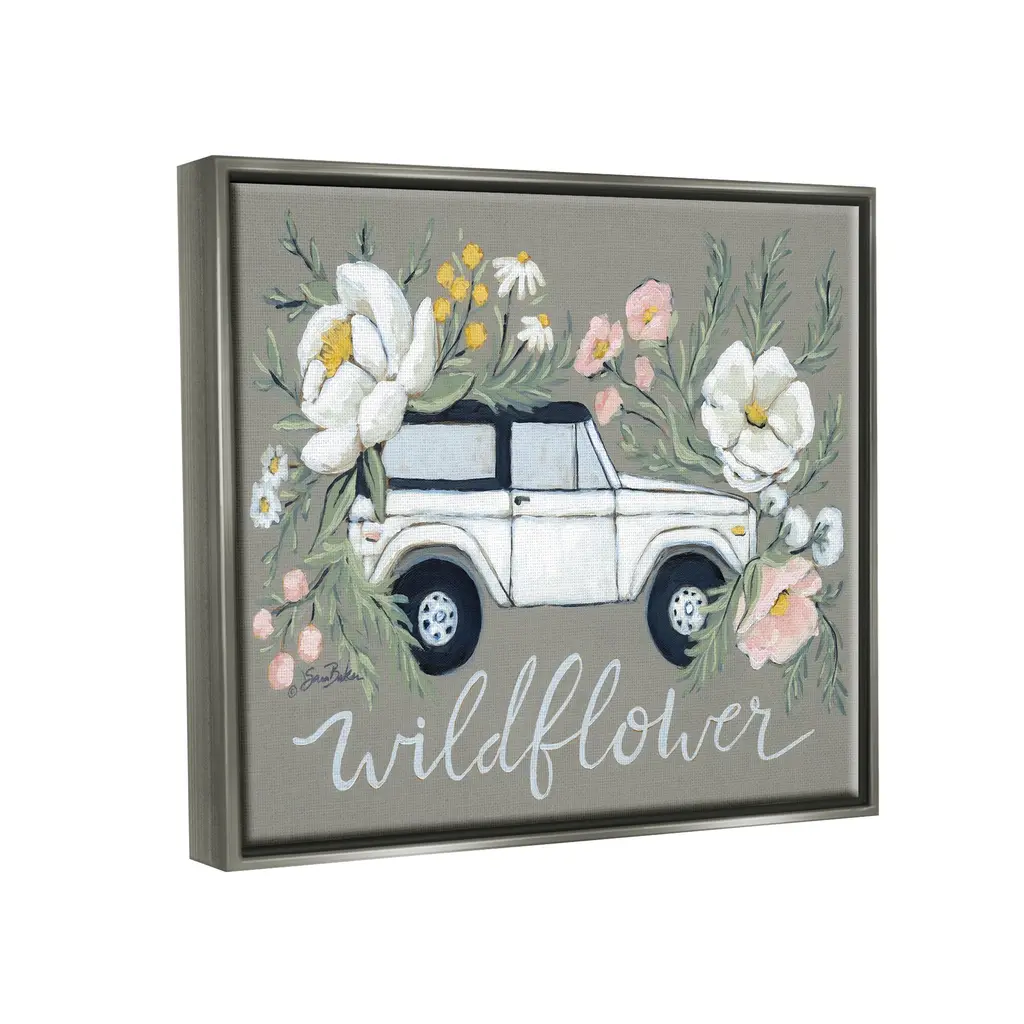 Stupell Wildflower Phrase Floral Car Framed Floater Canvas Wall Art Design By Sara Baker - 21 X 17 - Grey