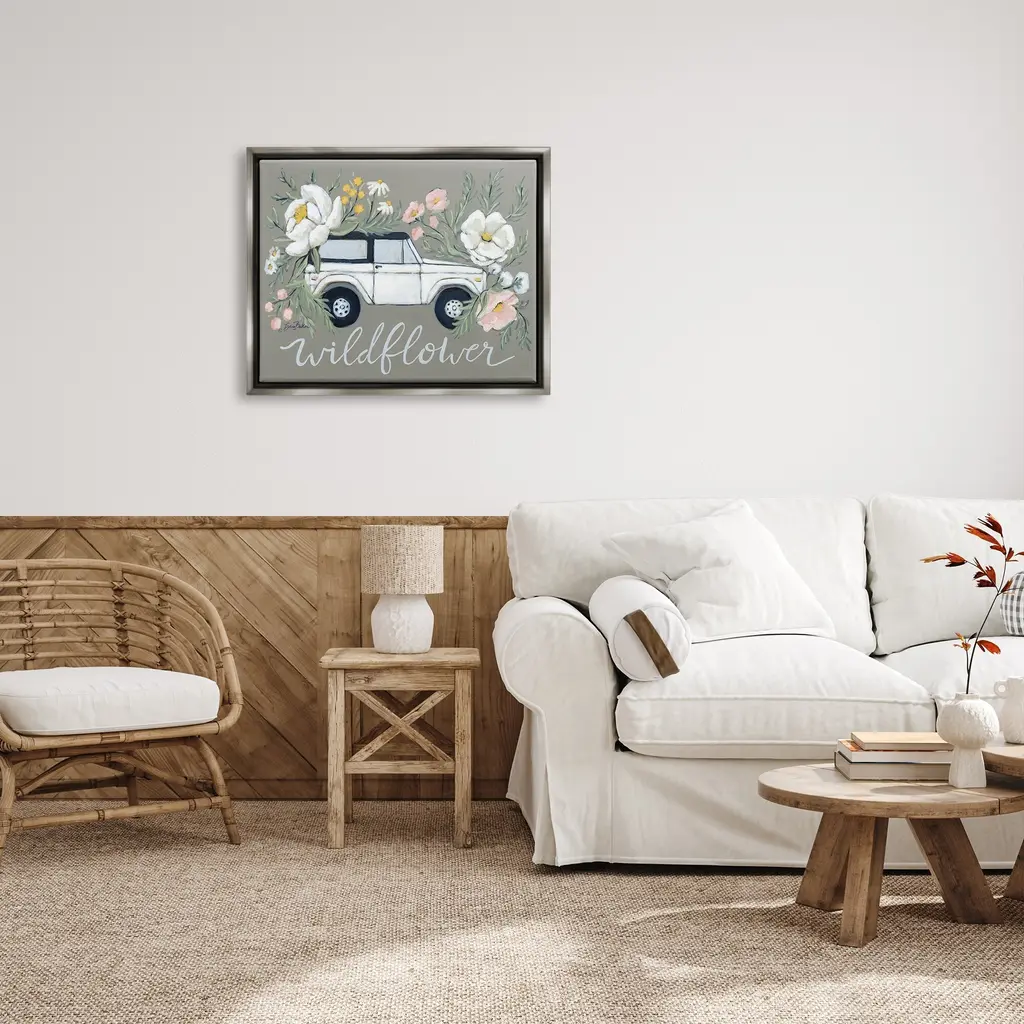 Elevate your home or office to the next level with Stupell Framed Floating Canvas Wall Art. Our premium hand-stretched canvas is mounted securely into a sturdy lightweight frame. The museum-style gap between the wrapped canvas and the box frame gives the illusion of floating artwork. Stupell Wall Art is made in the USA.Features: Dimensions: 21 x 1.7 x 17 Frame, 20 x 1.5 x 16 Canvas ArtFloating Frame Sizes Include Standard: 21 x 1.7 x 17 Oversized: 31 x 1.7 x 25Wall Art is Ready to Hang with Hardware Free Hanging. No installation required. For Easy Set Up Lean or Layer Artwork on Shelf or Against Wall.Our elevated 1.7" Thick Floating Frame is the perfect complement to our canvas style Wall Art. We use only the highest quality inks in house with industry leading printing solutions. Canvas is hand stretched over a durable wood foundation and then mounted securly into a Modern Box Frame. Made in the USA.Artwork Relates To: Floral, Pattern, Flower, Plant, Rose, Petal, Herbs, Car, Truck, WildflowerDesign by Sara Baker