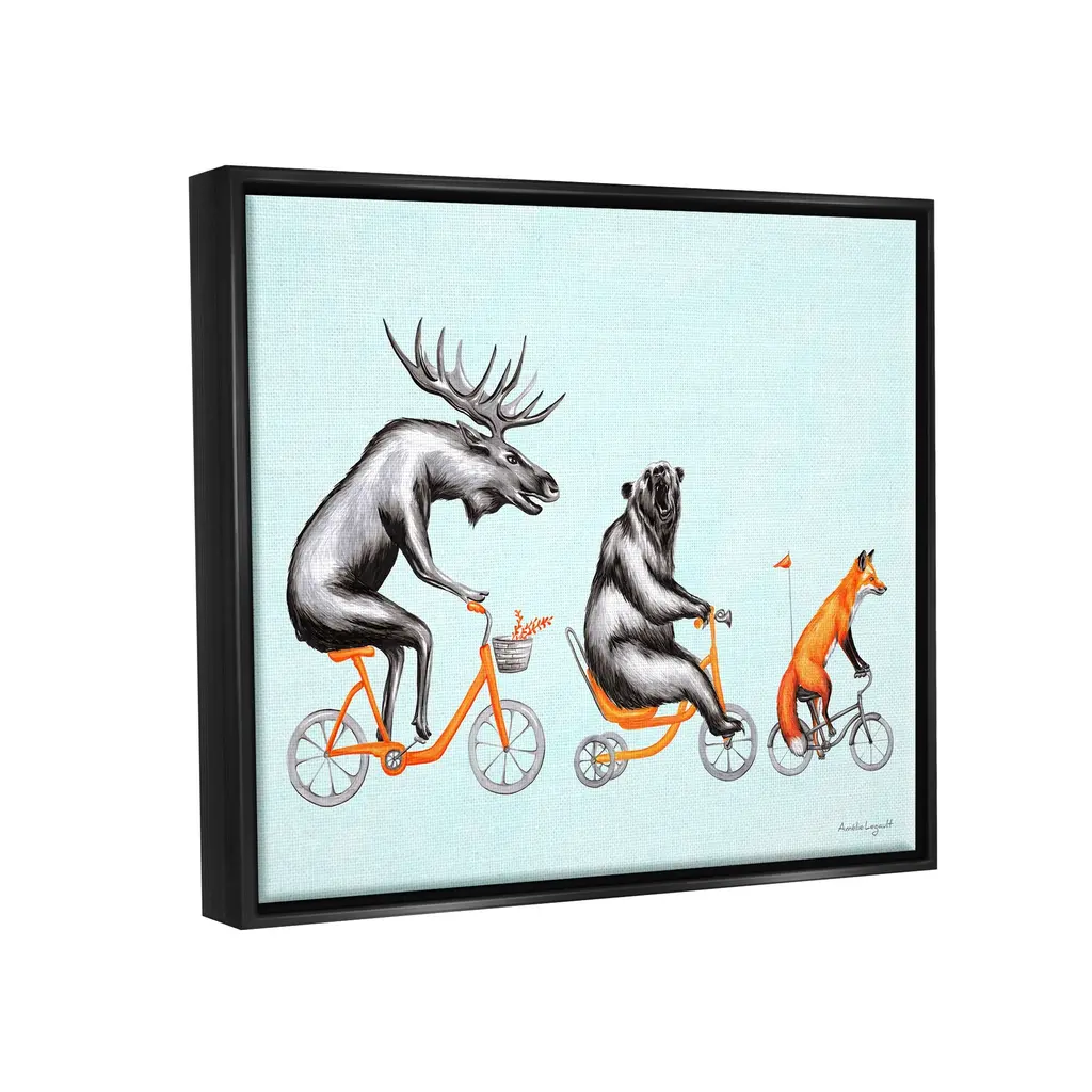 Stupell Wildlife Animals Riding Bikes Moose Bear Fox Floater Frame, Design By Amelie Legault - 20 X 16 - Black