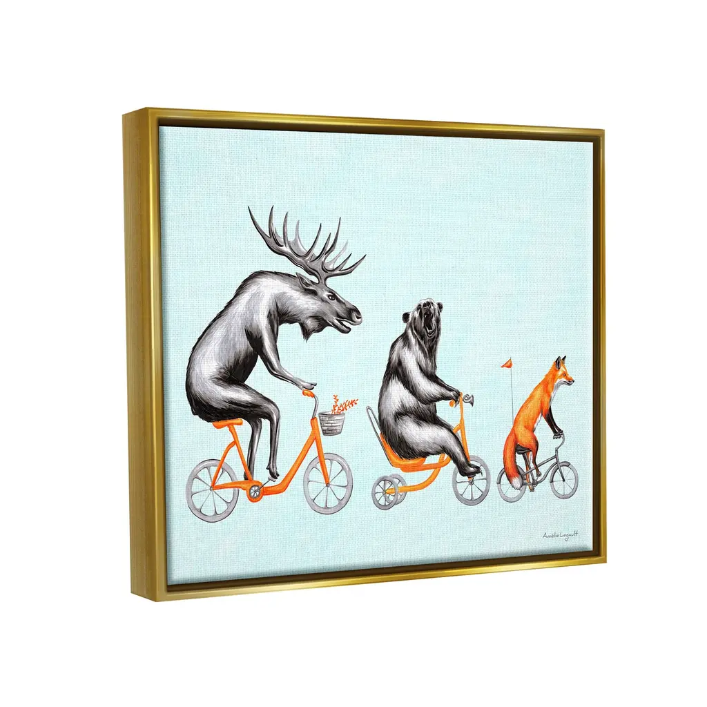Stupell Wildlife Animals Riding Bikes Moose Bear Fox Floater Frame, Design By Amelie Legault - 20 X 16 - Gold