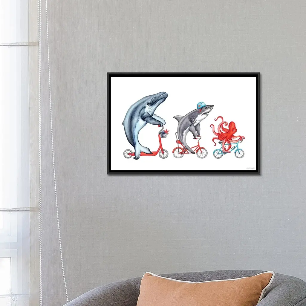 Elevate your home or office to the next level with Stupell Framed Floating Canvas Wall Decor. Our premium hand stretched canvas is mounted securely into a sturdy lightweight frame. The museum style gap between wrapped canvas and box frame gives the illusion of floating artwork. Features: Wall Art is Ready to Hang - No Installation or Hardware Needed. For Easy Set Up Lean or Layer Artwork on Shelf or Against Wall.Our elevated 1.5" Thick Floating Frame is the perfect complement to our canvas style Wall Art. We use only the highest quality inks in house with industry leading printing solutions. Canvas is hand stretched over a durable wood foundation and then mounted securely into a Modern Box Frame. Made in the USA.Artwork Relates To: Bicycle; Transportation; Vehicle; Bike; Antelope; Mammal; Animal; Wildlife; Canine; Drawing; Design by Amelie Legault