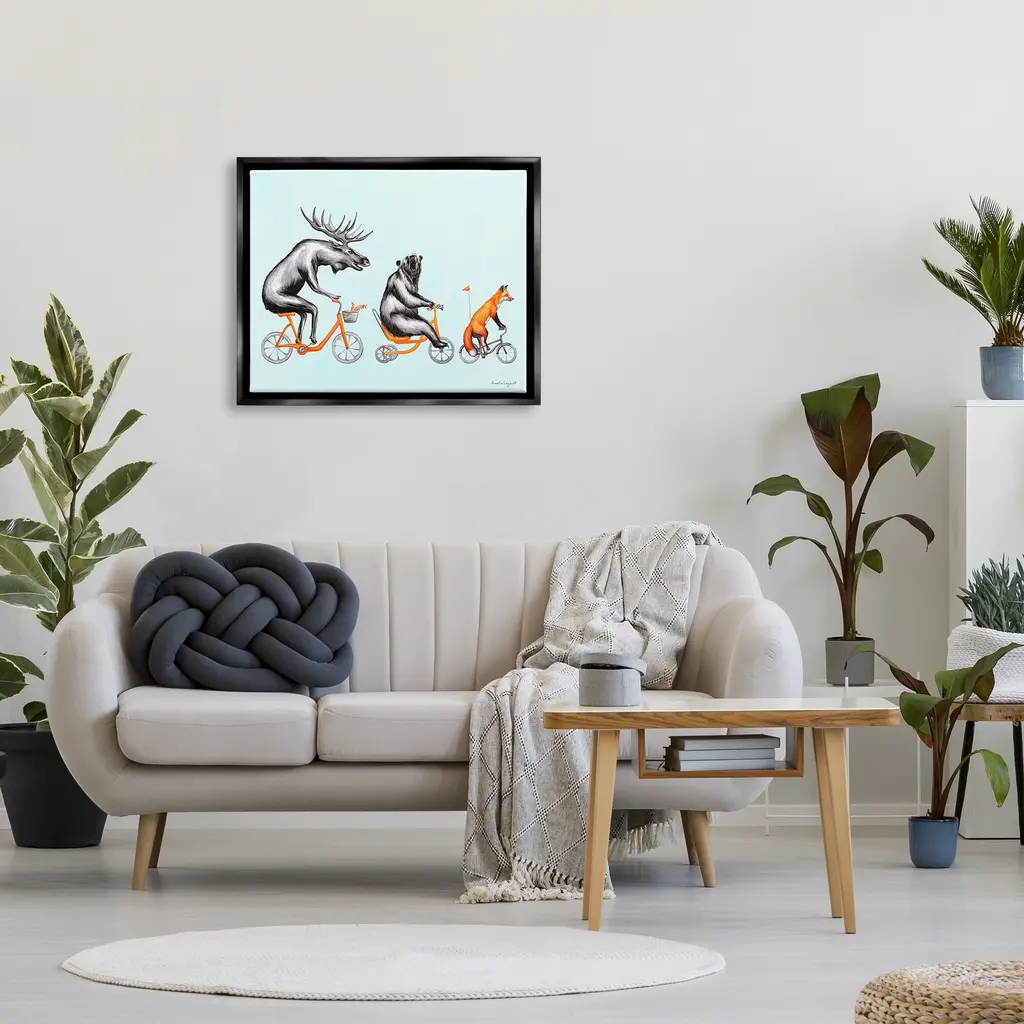Stupell Wildlife Animals Riding Bikes Moose Bear Fox Floater Frame, Design By Amelie Legault - 30 X 24 - Black