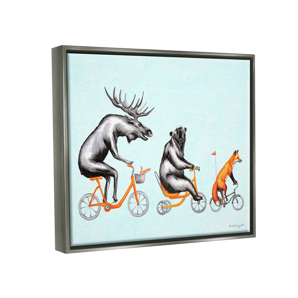 Stupell Wildlife Animals Riding Bikes Moose Bear Fox Floater Frame, Design By Amelie Legault - 30 X 24 - Grey