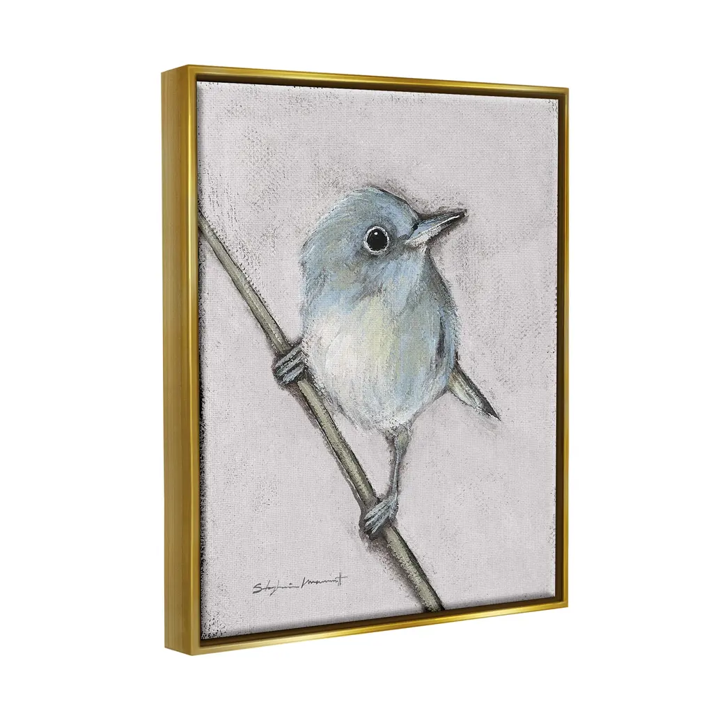 Stupell Wildlife Perched Bird Painting Framed Floater Canvas Wall Art By Stephanie Workman Marrott - 25 X 31 - Gold