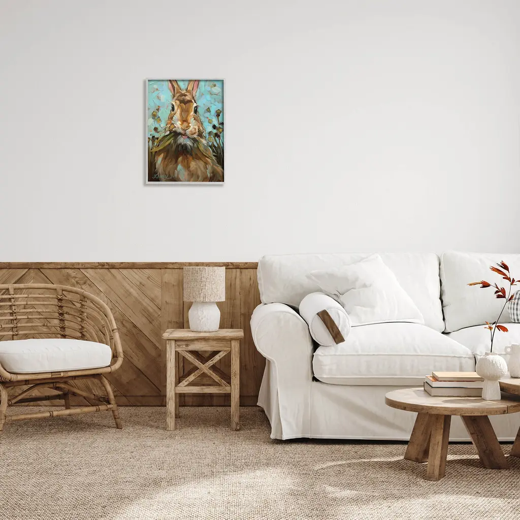 Our Framed Giclee Wall Art adds a touch of class to any space in your home or office. Frames are available in three alluring styles: black, gray farmhouse and white. Our textured artwork will add more depth and dimension to any space. Each piece is mounted with a 1.5 inch thick wood grain frame that is ready to hang! Looking for a statement piece? We have oversized artwork available.Features: Dimensions: 11 x 1.5 x 14 FramedFramed Giclee Sizes Include Standard: 11 x 1.5 x 14 Large: 16 x 1.5 x 20 Oversized: 24 x 1.5 x 30Wall Art is Ready to Hang - No Installation or Hardware Needed. For Easy Set Up Lean or Layer Artwork on Shelf or Against Wall.Our giclée prints are carefully mounted on a durable MDF backing, and then perfectly finished in a 1.5 inch thick woodgrain frame. Mounted frame colors include black, gray farmhouse and white. Made In USA.Artwork Relates To: Painting, Animal, Mammal, Rabbit, Bunny, Wildlife, Nature, Modern Design by Andrea Lavery