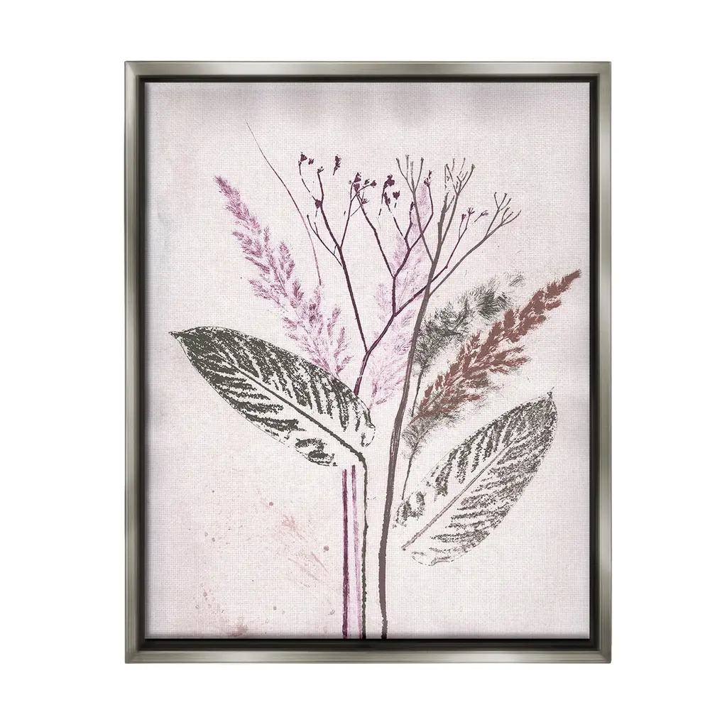 Stupell Willow Leaves On Pink Framed Floater Canvas Wall Art Design By Grace Popp - 25 X 31 - Grey