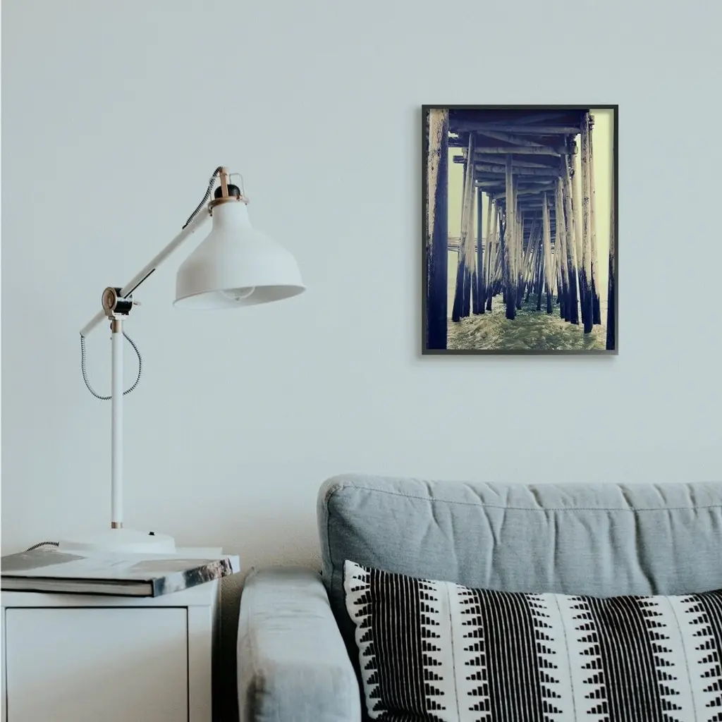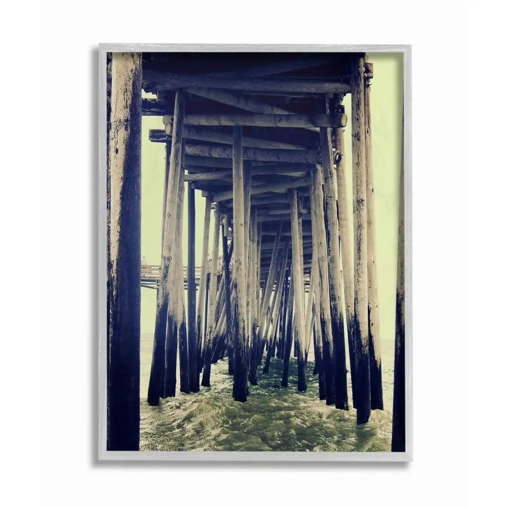 Stupell Wind Waves Under Distressed Pier Antique Scene Framed Wall Art - Multi-Color - 11 X 14 - Black