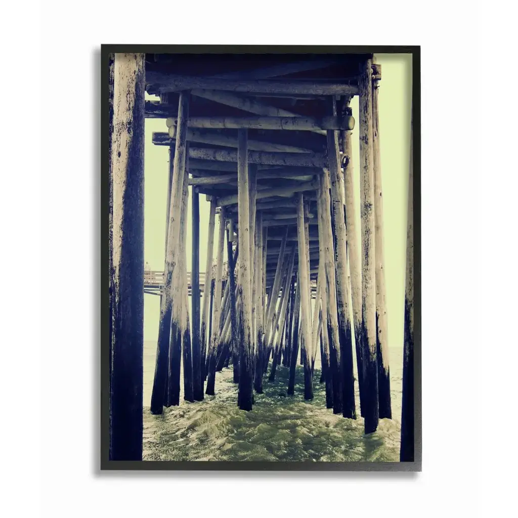 Stupell Wind Waves Under Distressed Pier Antique Scene Framed Wall Art - Multi-Color - 16 X 20 - Black