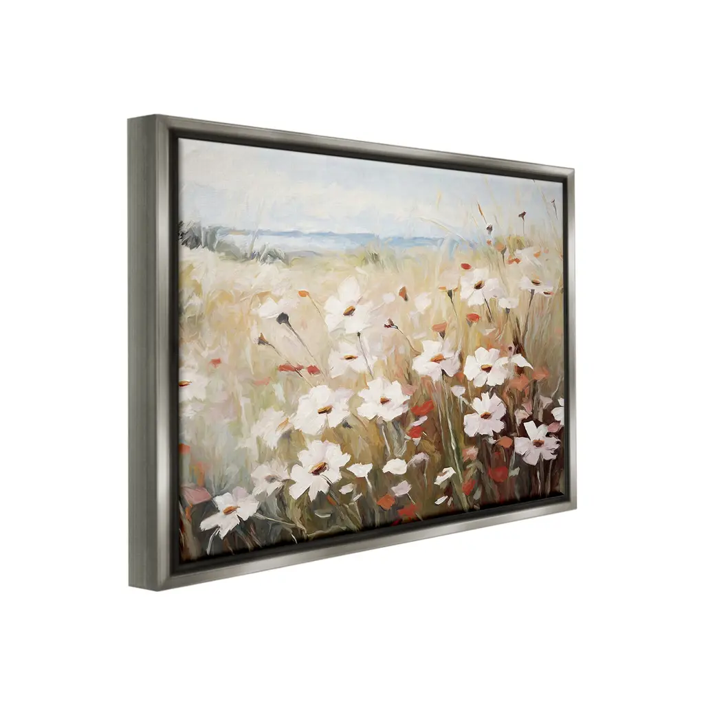 Elevate your home or office to the next level with Stupell Framed Floating Canvas Wall Art. Our premium hand-stretched canvas is mounted securely into a sturdy lightweight frame. The museum-style gap between the wrapped canvas and the box frame gives the illusion of floating artwork. Stupell Wall Art is made in the USA.Features: Dimensions: 21 x 1.7 x 17 Frame, 20 x 1.5 x 16 Canvas ArtFloating Frame Canvas Products are available in sizes 21"x17" and 31"x25". All Floating Frame Canvas Products have a 1.7" Depth.Wall Art is Ready to Hang with Hardware Free Hanging. No Installation required. For Easy Set Up Lean or Layer Artwork on Shelf or Against Wall. Artwork is Permently Fixed into the Frame.Our elevated 1.7" Thick Floating Frame is the perfect complement to our canvas style Wall Art. We use only the highest quality inks in house with industry leading printing solutions. Canvas is hand stretched over a durable wood foundation and then mounted securly into a Modern Box Frame. Made in the USA.Artwork Relates To: Plant, Flower, Floral, Country, Farmhouse, Landscape, MeadowDesign by Ramona Murdock