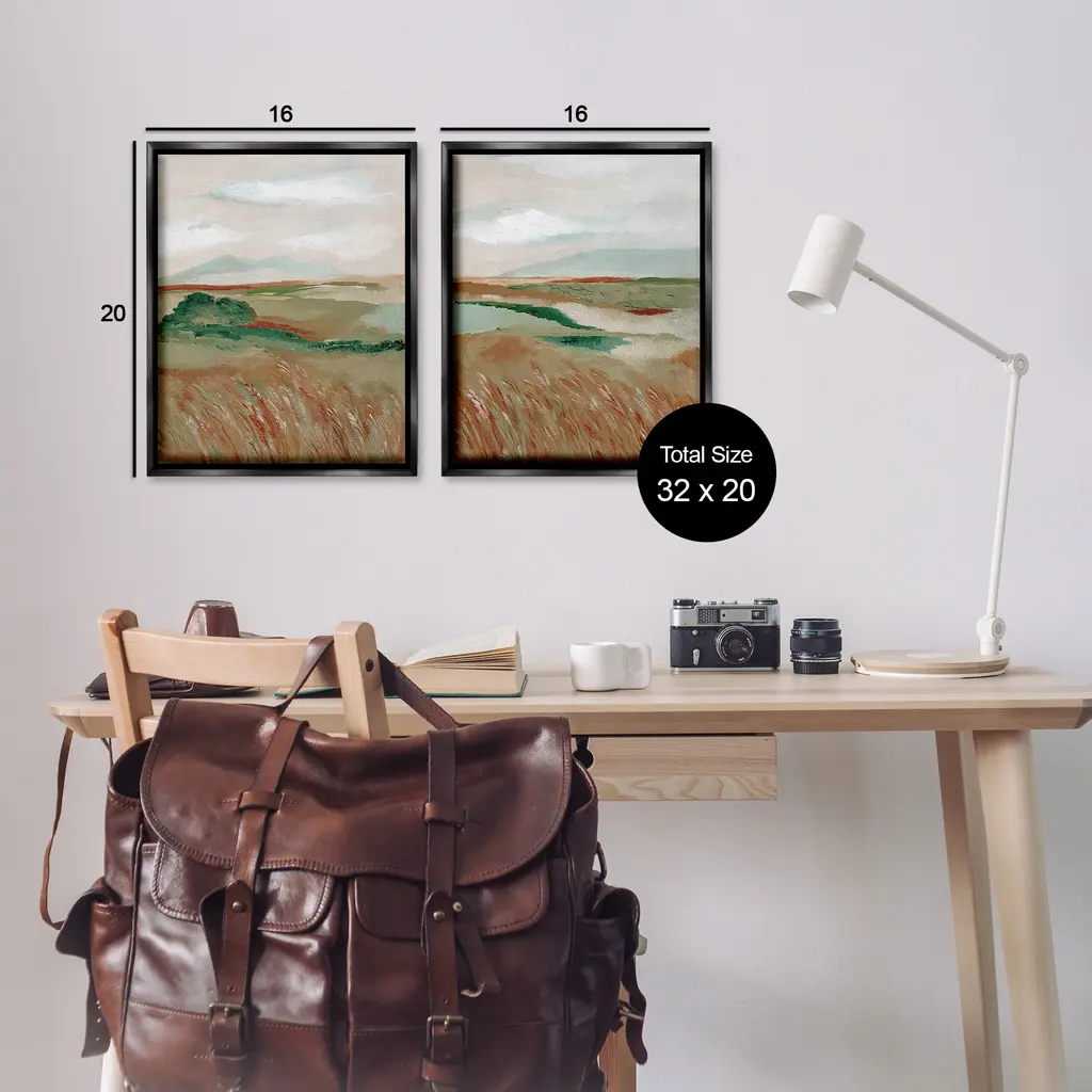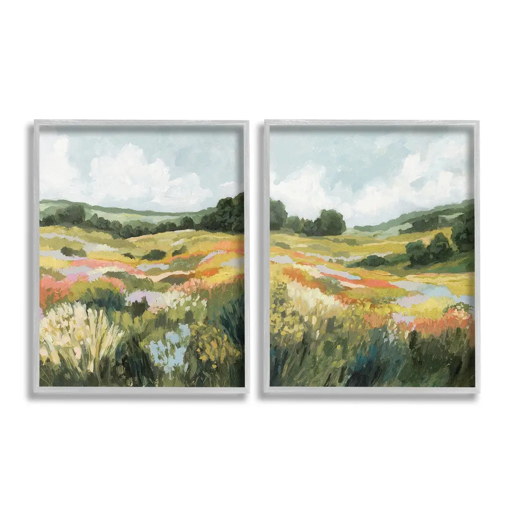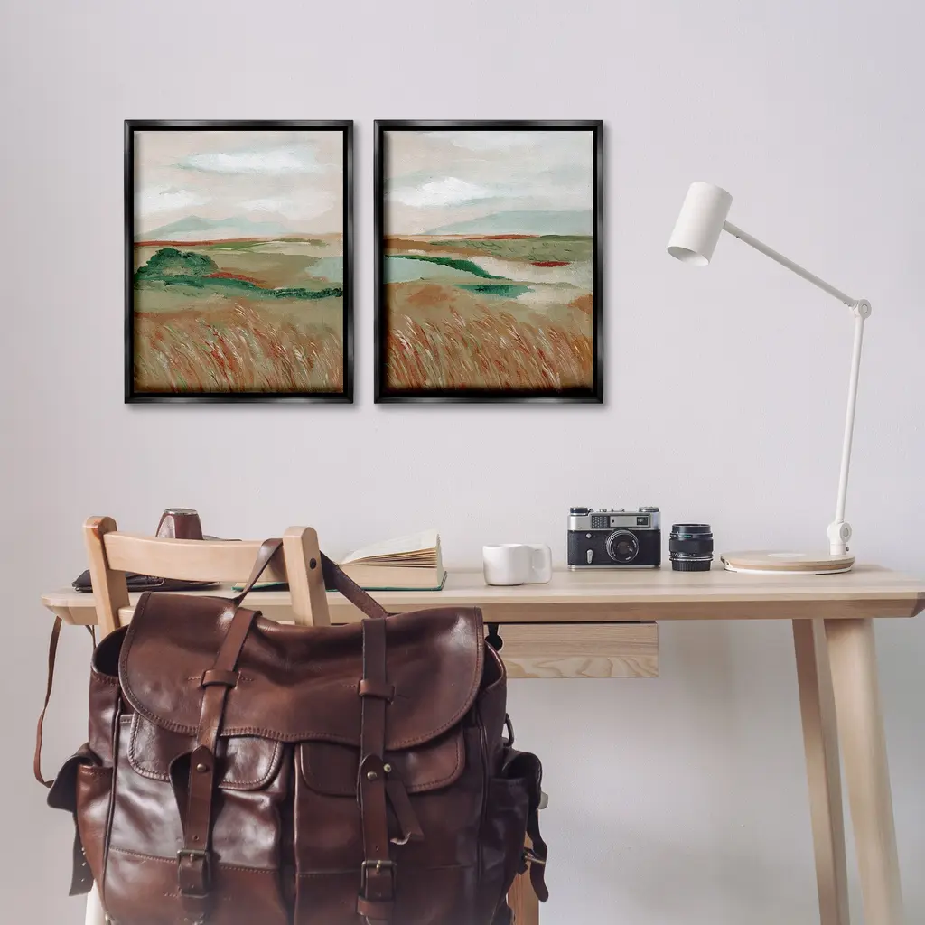 Elevate your home or office to the next level with Stupell Framed Floating Canvas Wall Art. Our premium hand-stretched canvas is mounted securely into a sturdy lightweight frame. The museum-style gap between the wrapped canvas and the box frame gives the illusion of floating artwork. Stupell Wall Art is made in the USA.Features: Dimensions: 2 Piece Set, Each Frame is 17 x 1.7 x 21Two Piece Floater Framed Canvas are available as 17x21 or 25x31 Panels. All Floater Frame Products have a 1.7" Depth.Wall Art is Ready to Hang with Hardware Free Hanging. No Installation required. For Easy Set Up Lean or Layer Artwork on Shelf or Against Wall. Artwork is Permently Fixed into the Frame.Our elevated 1.7" Thick Floating Frame is the perfect complement to our canvas style Wall Art. We use only the highest quality inks in house with industry leading printing solutions. Canvas is hand stretched over a durable wood foundation and then mounted securly into a Modern Box Frame. Made in the USA.Artwork Relates To: Painting, Modern, Landscape, Modern, Abstract, Country, Field, Pasture, FarmDesign by Nikita Jariwala