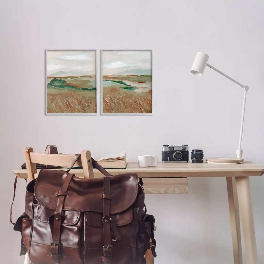 Fill any space in your home or office with our Framed Wall Art Sets. Our framed artwork is securely mounted into a 1.5-inch thick wood grain frame and ready to hang. Frames are available in three alluring styles: black, gray farmhouse and white. Stupell Wall Art is made in the USA.Features: Dimensions: 2 Piece Set, Each Panel is 11 x 1.5 x 14 FramedTwo Piece Framed Giclee Sets are available as 11"x14", 16"x20" or 24"x30" Panels. All Framed Giclee Products have a 1.5" Depth.Wall Art is Ready to Hang with Hardware Free Hanging. No installation required. For Easy Set Up Lean or Layer Artwork on Shelf or Against Wall.Curated Wall Art Sets make it easy for you complete the theme for any room. Our giclée prints are carefully mounted on a durable MDF backing, and then perfectly finished in a 1.5 inch thick woodgrain frame. Mounted frame colors include black, gray farmhouse and white. Made In USA.Artwork Relates To: Painting, Modern, Landscape, Modern, Abstract, Country, Field, Pasture, FarmDesign by Nikita Jariwala