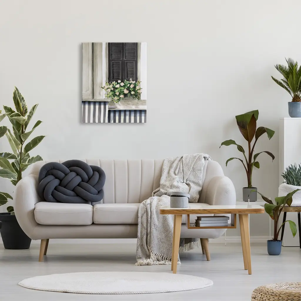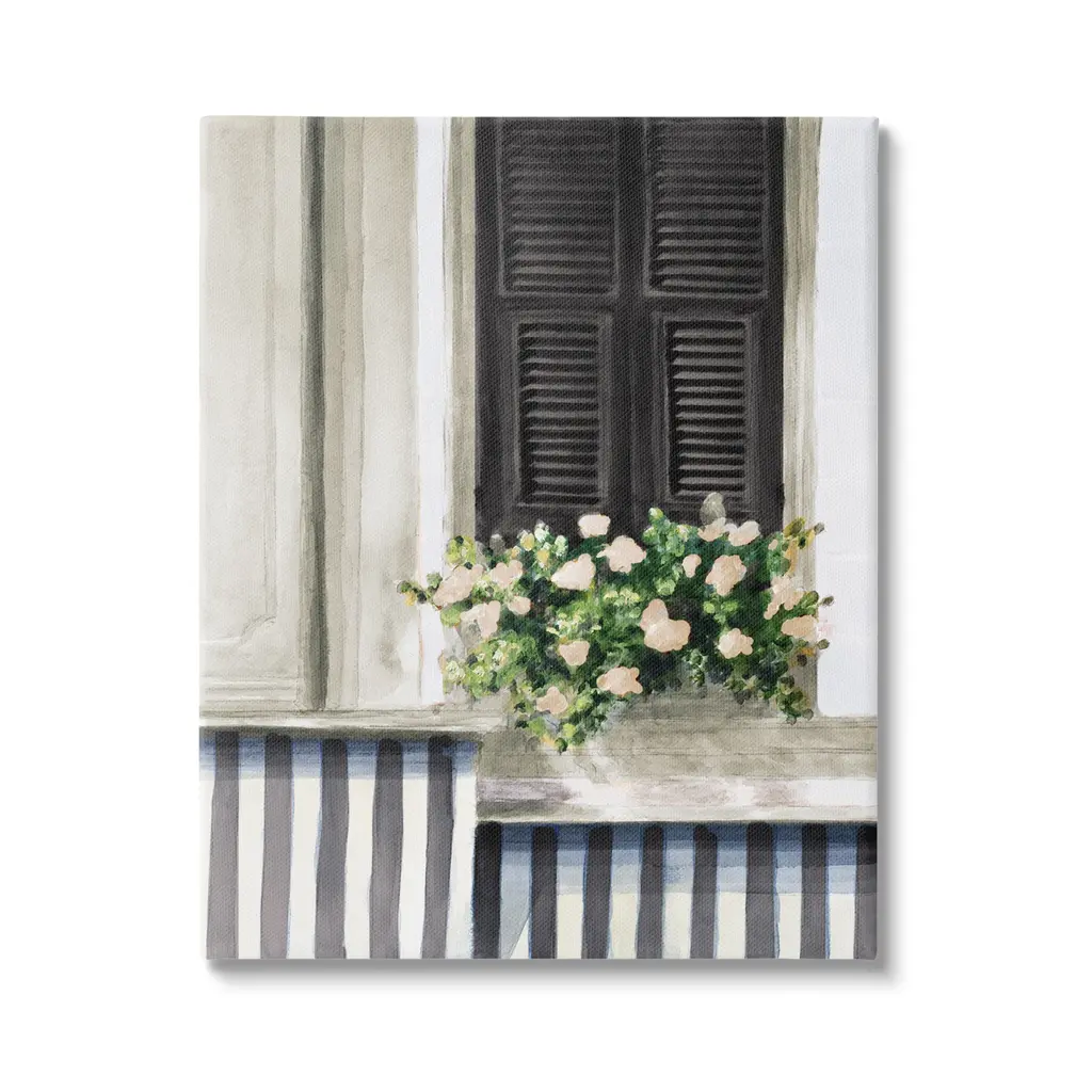 Proudly made in the USA, Our stretched canvas is created with the highest standards. We use only the highest quality inks and canvas on our in house Mimaki printers, and then hand cut and stretch each piece over a 1.5 inch thick wooden frame for hanging. The art comes ready to hang with no installation required. Not to mention, at this size, it is sure to be the focal point of any room!Features:Stretched Canvas Sizes IncludeStandard: 16 x 1.5 x 20Large: 20 x 1.5 x 30X-Large: 30 x 1.5 x 40Oversized: 36 x 1.5 x 48Wall Art is Ready to Hang - No Installation or Hardware Needed. For Easy Set Up Lean or Layer Artwork on Shelf or Against Wall.Artwork Relates To: Window, Shutter, Plant, Flower, Blossom, Window Shade, Geranium, Flower Arrangement, House, BuildingOur stretched canvas is created with the highest standards. We use only the highest quality inks and canvas on our in house Mimaki printers, and then hand cut and stretch each piece over a 1.5 inch thick wooden frame for hanging. Made In USA.Design by Lanie Loreth