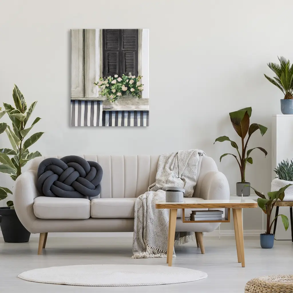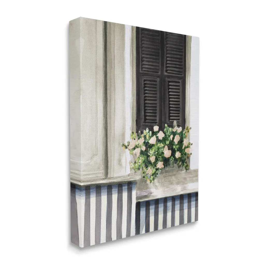 Proudly made in the USA, Our stretched canvas is created with the highest standards. We use only the highest quality inks and canvas on our in house Mimaki printers, and then hand cut and stretch each piece over a 1.5 inch thick wooden frame for hanging. The art comes ready to hang with no installation required. Not to mention, at this size, it is sure to be the focal point of any room!Features:Stretched Canvas Sizes IncludeStandard: 16 x 1.5 x 20Large: 20 x 1.5 x 30X-Large: 30 x 1.5 x 40Oversized: 36 x 1.5 x 48Wall Art is Ready to Hang - No Installation or Hardware Needed. For Easy Set Up Lean or Layer Artwork on Shelf or Against Wall.Artwork Relates To: Window, Shutter, Plant, Flower, Blossom, Window Shade, Geranium, Flower Arrangement, House, BuildingOur stretched canvas is created with the highest standards. We use only the highest quality inks and canvas on our in house Mimaki printers, and then hand cut and stretch each piece over a 1.5 inch thick wooden frame for hanging. Made In USA.Design by Lanie Loreth