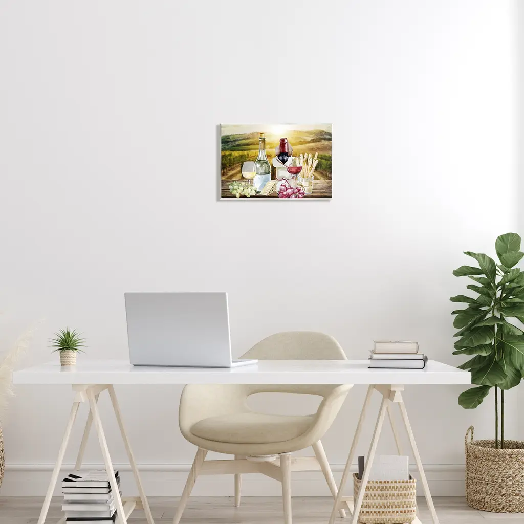 Our wall plaques start as high-quality lithograph prints mounted on durable 0.5-inch thick MDF wood. Each piece is hand finished and comes with a fresh layer of white foil on the sides to give it a crisp, clean look. Plaques arrive ready to hang without installation and come with removable plastic corners to keep them from damage in transit. Stupell Wall Art is made in the USA.Features: Dimensions: 15 x 0.5 x 10 InchesWall Plaque Sizes Include Standard: 15 x 0.5 x 10 Oversized: 19 x 0.5 x 13Wall Art is Ready to Hang with Hardware Free Hanging. No installation required. For Easy Set Up Lean or Layer Artwork on Shelf or Against Wall.All of our wall plaques start off as high quality lithograph prints that are then mounted on durable 0.5 inch thick MDF wood. Each piece is hand finished and comes with a fresh layer of foil on the sides to give it a crisp clean look. Made In USA.Artwork Relates To: Nature, Countryside, Alcohol, Beverage, Vineyard, Wine, Bottle, Glass, Grapes, KitchenDesign by Kim Allen