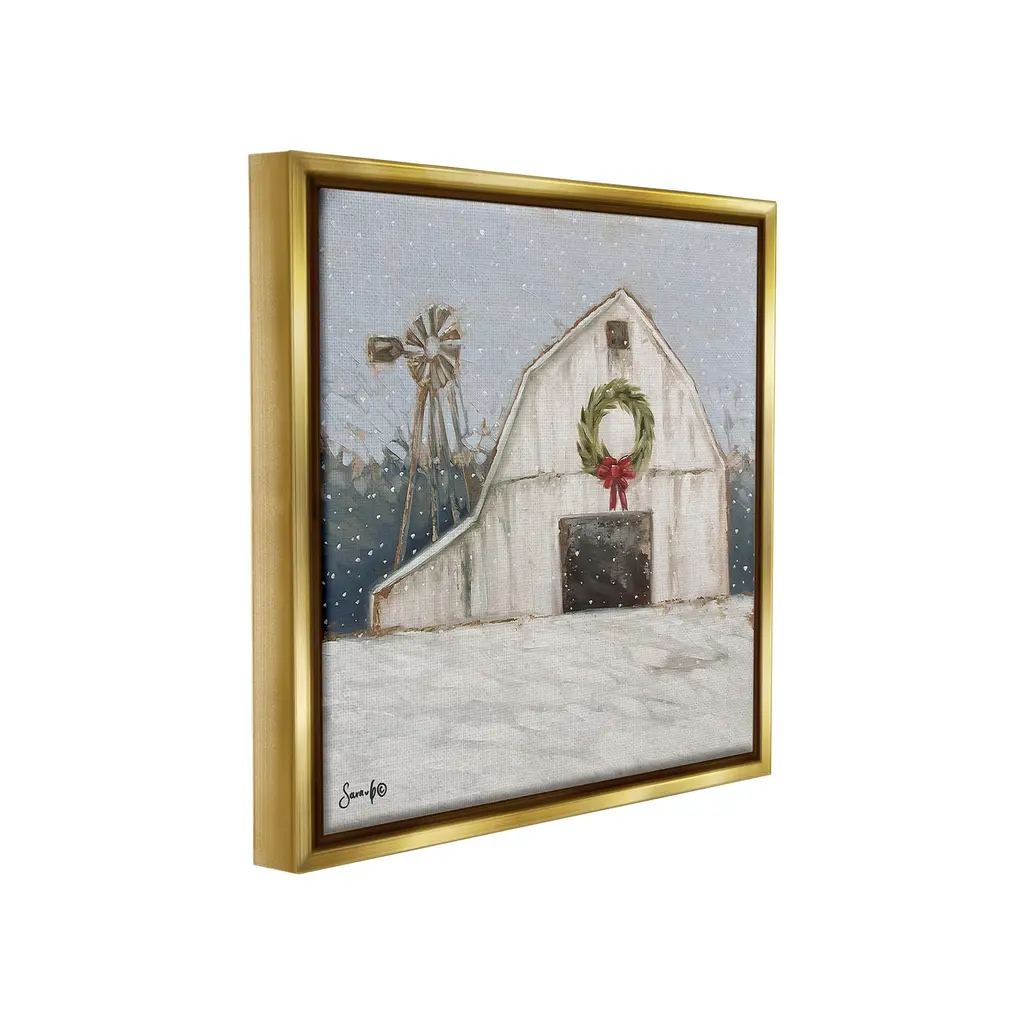 Elevate your home or office to the next level with Stupell Framed Floating Canvas Wall Art. Our premium hand-stretched canvas is mounted securely into a sturdy lightweight frame. The museum-style gap between the wrapped canvas and the box frame gives the illusion of floating artwork. Stupell Wall Art is made in the USA.Features: Dimensions: 18 x 1.7 x 18 Frame, 17 x 1.5 x 17 Canvas ArtFloating Frame Canvas Products are available in sizes 18"x18" and 25"x25". All Floating Frame Canvas Products have a 1.7" Depth.Wall Art is Ready to Hang with Hardware Free Hanging. No Installation required. For Easy Set Up Lean or Layer Artwork on Shelf or Against Wall. Artwork is Permently Fixed into the Frame.Our elevated 1.7" Thick Floating Frame is the perfect complement to our canvas style Wall Art. We use only the highest quality inks in house with industry leading printing solutions. Canvas is hand stretched over a durable wood foundation and then mounted securly into a Modern Box Frame. Made in the USA.Artwork Relates To: Countryside, Architecture, Barn, Building, Farm, Rural, Snow, Winter, WreathDesign by Sara G. Designs