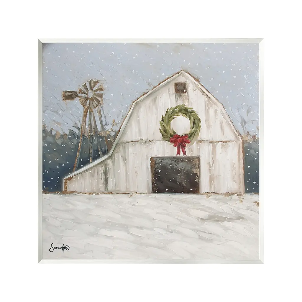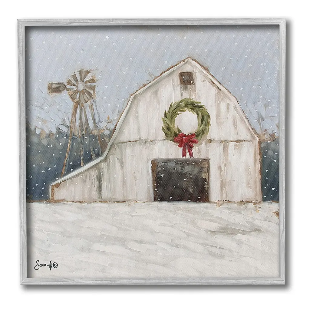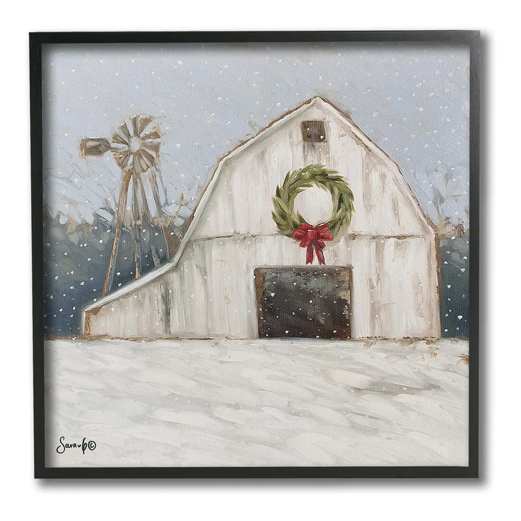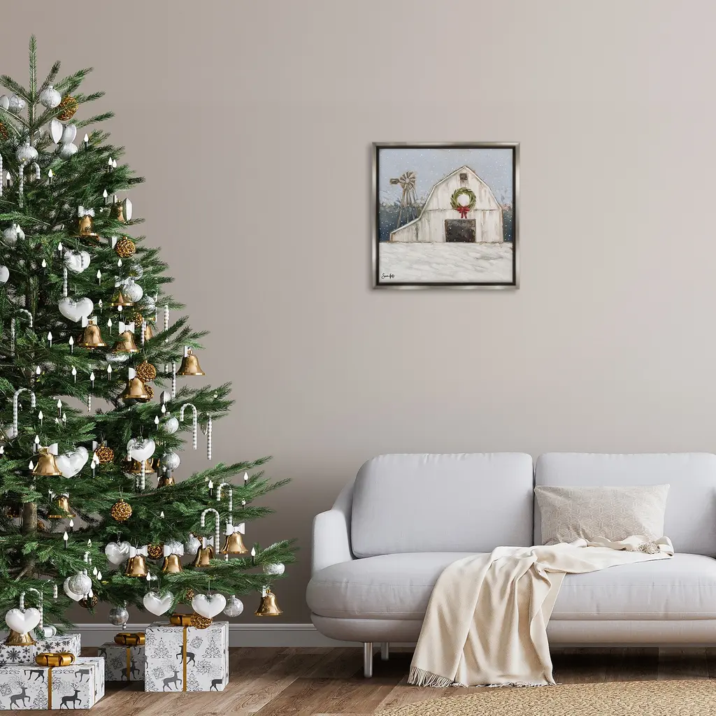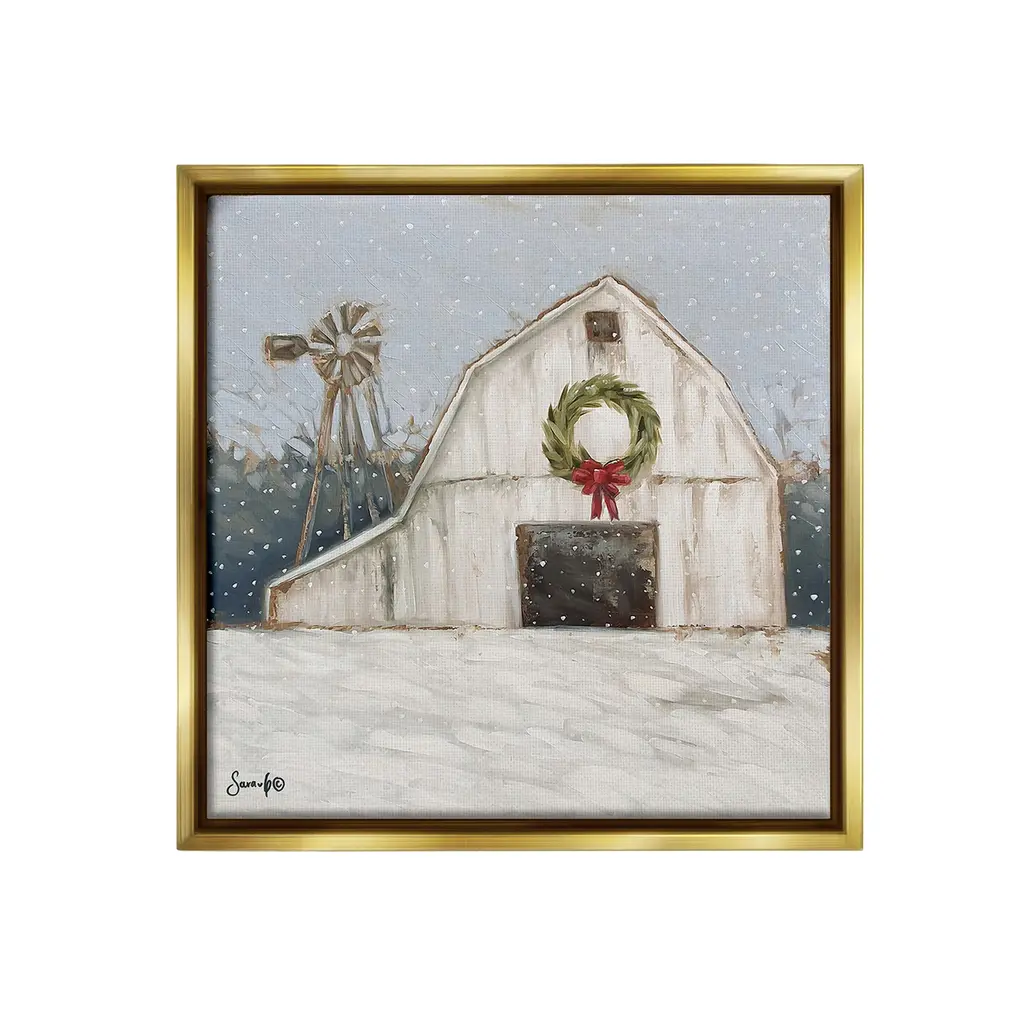 Elevate your home or office to the next level with Stupell Framed Floating Canvas Wall Art. Our premium hand-stretched canvas is mounted securely into a sturdy lightweight frame. The museum-style gap between the wrapped canvas and the box frame gives the illusion of floating artwork. Stupell Wall Art is made in the USA.Features: Dimensions: 18 x 1.7 x 18 Frame, 17 x 1.5 x 17 Canvas ArtFloating Frame Canvas Products are available in sizes 18"x18" and 25"x25". All Floating Frame Canvas Products have a 1.7" Depth.Wall Art is Ready to Hang with Hardware Free Hanging. No Installation required. For Easy Set Up Lean or Layer Artwork on Shelf or Against Wall. Artwork is Permently Fixed into the Frame.Our elevated 1.7" Thick Floating Frame is the perfect complement to our canvas style Wall Art. We use only the highest quality inks in house with industry leading printing solutions. Canvas is hand stretched over a durable wood foundation and then mounted securly into a Modern Box Frame. Made in the USA.Artwork Relates To: Countryside, Architecture, Barn, Building, Farm, Rural, Snow, Winter, WreathDesign by Sara G. Designs