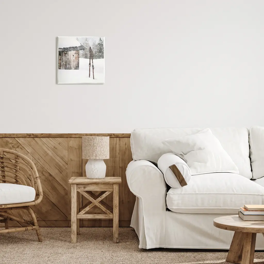 Our wall plaques start as high-quality lithograph prints mounted on durable 0.5-inch thick MDF wood. Each piece is hand finished and comes with a fresh layer of white foil on the sides to give it a crisp, clean look. Plaques arrive ready to hang without installation and come with removable plastic corners to keep them from damage in transit. Stupell Wall Art is made in the USA.Features: Dimensions: 12 x 0.5 x 12 InchesWall Art is Ready to Hang with Hardware Free Hanging. No installation required. For Easy Set Up Lean or Layer Artwork on Shelf or Against Wall.All of our wall plaques start off as high quality lithograph prints that are then mounted on durable 0.5 inch thick MDF wood. Each piece is hand finished and comes with a fresh layer of foil on the sides to give it a crisp clean look. Made In USA.Artwork Relates To: Building, Nature, Winter, Countryside, Hut, Rural, Snow, House, Cabin, Blizzard, TreeDesign by LSR Design Studio