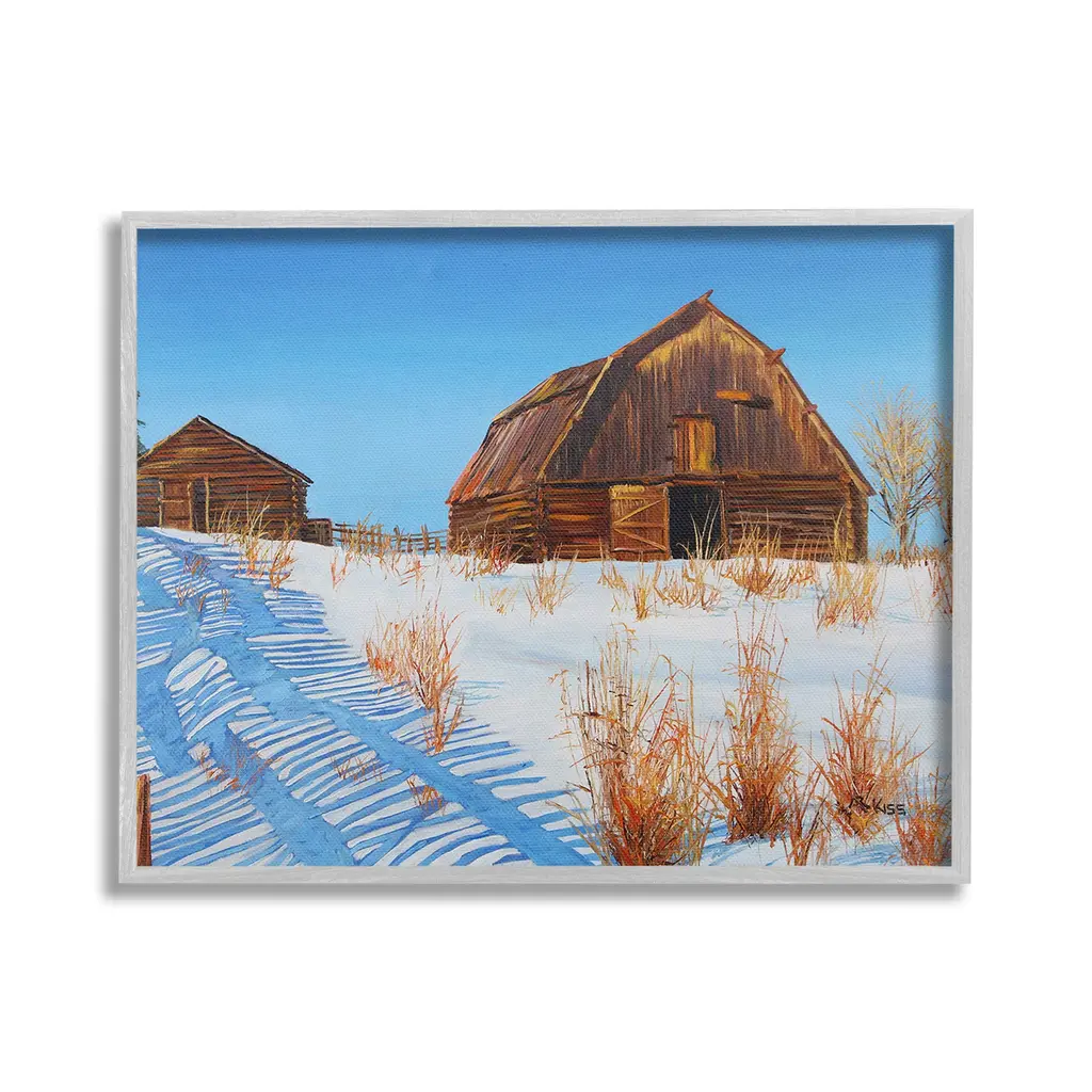 Elevate your home or office to the next level with Stupell Framed Floating Canvas Wall Art. Our premium hand-stretched canvas is mounted securely into a sturdy lightweight frame. The museum-style gap between the wrapped canvas and the box frame gives the illusion of floating artwork. Stupell Wall Art is made in the USA.Features: Dimensions: 21 x 1.7 x 17 Frame, 20 x 1.5 x 16 Canvas ArtFloating Frame Canvas Products are available in sizes 21"x17" and 31"x25". All Floating Frame Canvas Products have a 1.7" Depth.Wall Art is Ready to Hang with Hardware Free Hanging. No Installation required. For Easy Set Up Lean or Layer Artwork on Shelf or Against Wall. Artwork is Permently Fixed into the Frame.Our elevated 1.7" Thick Floating Frame is the perfect complement to our canvas style Wall Art. We use only the highest quality inks in house with industry leading printing solutions. Canvas is hand stretched over a durable wood foundation and then mounted securly into a Modern Box Frame. Made in the USA.Artwork Relates To: Nature, Countryside, Rural, Building, Barn, Farm, House, Cabin, Winter, Snow, LodgeDesign by Andrew Kiss