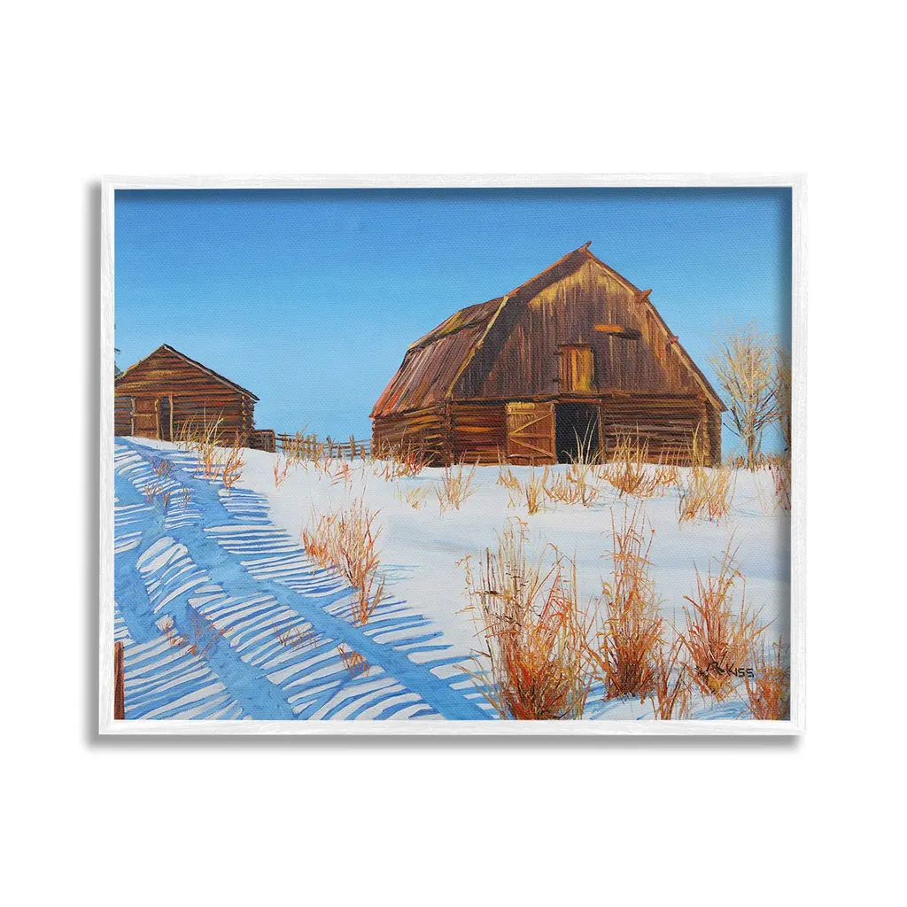 Add dimension to any room with our textured Framed Giclee Artwork. Our framed artwork is securely mounted into a 1.5-inch thick wood grain frame and ready to hang. Frames are available in three alluring styles: black, gray farmhouse and white. In addition, you should check out our oversized options if you want a statement piece. Stupell Wall Art is made in the USA.Features: Dimensions: 14 x 1.5 x 11 FramedFramed Giclee Products are available in the sizes 14"x11", 20"x16" or 30"x24". All Framed Giclee Products have a 1.5" Depth. Wall Art is Ready to Hang with Hardware Free Hanging. No installation required. For Easy Set Up Lean or Layer Artwork on Shelf or Against Wall.Our giclée prints are carefully mounted on a durable MDF backing, and then perfectly finished in a 1.5 inch thick woodgrain frame. Mounted frame colors include black, gray farmhouse and white. Made In USA.Artwork Relates To: Nature, Countryside, Rural, Building, Barn, Farm, House, Cabin, Winter, Snow, LodgeDesign by Andrew Kiss
