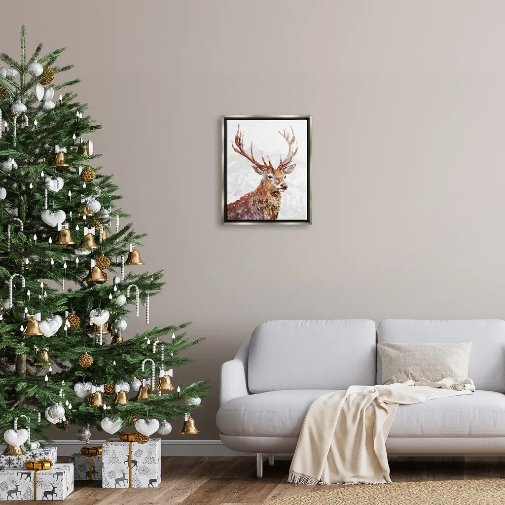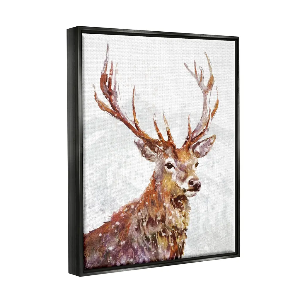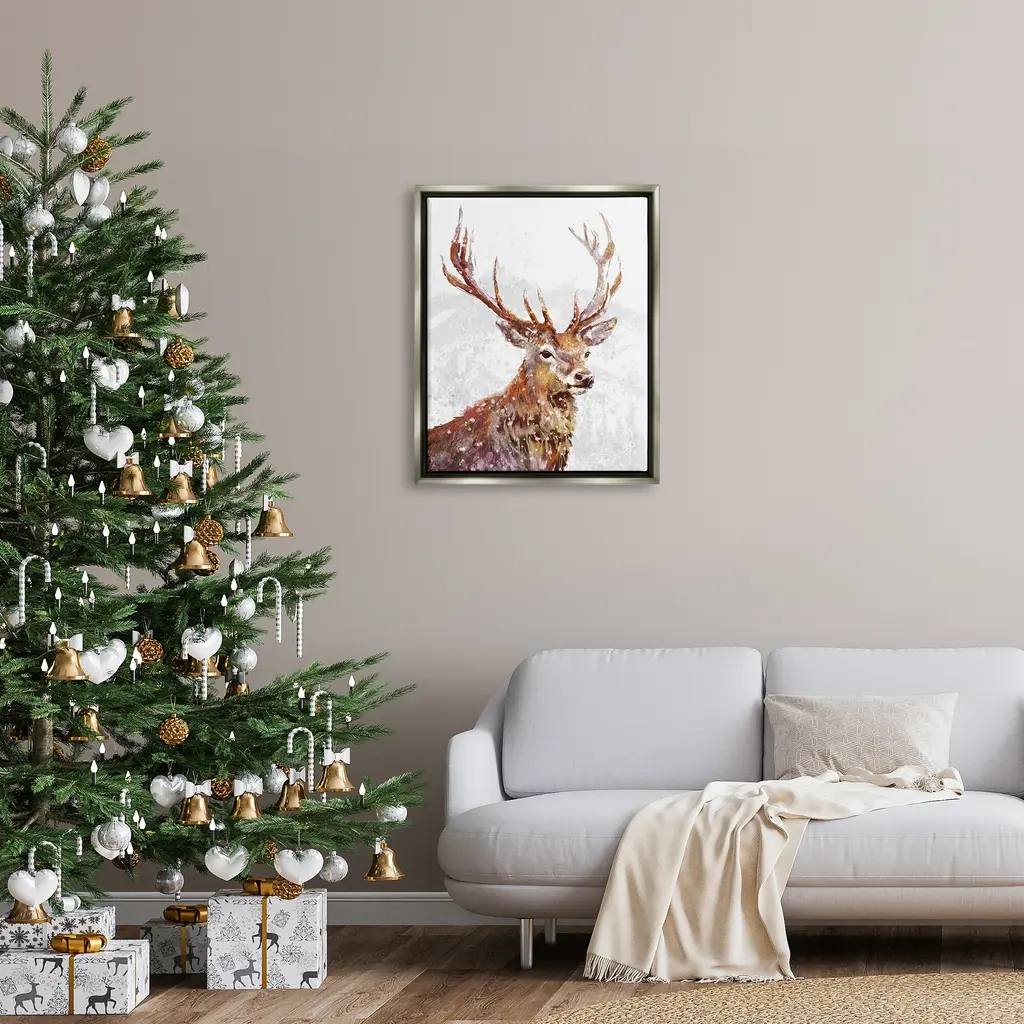 Elevate your home or office to the next level with Stupell Framed Floating Canvas Wall Art. Our premium hand-stretched canvas is mounted securely into a sturdy lightweight frame. The museum-style gap between the wrapped canvas and the box frame gives the illusion of floating artwork. Stupell Wall Art is made in the USA.Features: Dimensions: 17 x 1.7 x 21 Frame, 16 x 1.5 x 20 Canvas ArtFloating Frame Sizes Include Standard: 17 x 1.7 x 21 Oversized: 25 x 1.7 x 31Wall Art is Ready to Hang - No Installation or Hardware Needed. For Easy Set Up Lean or Layer Artwork on Shelf or Against Wall.Our elevated 1.7" Thick Floating Frame is the perfect complement to our canvas style Wall Art. We use only the highest quality inks in house with industry leading printing solutions. Canvas is hand stretched over a durable wood foundation and then mounted securly into a Modern Box Frame. Made in the USA.Artwork Relates To: Animal, Deer, Mammal, Wildlife, Elk, Snow, WinterDesign by Pip Wilson