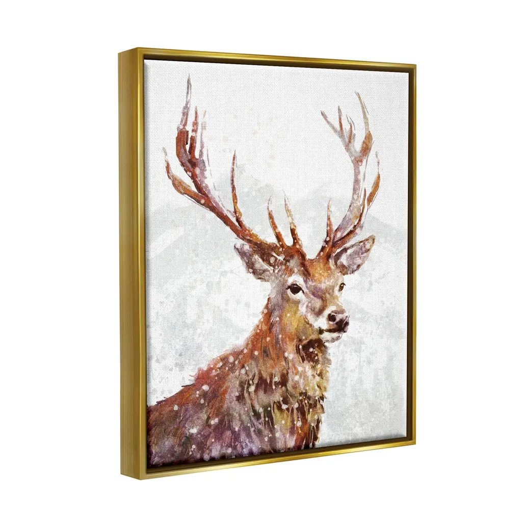 Elevate your home or office to the next level with Stupell Framed Floating Canvas Wall Art. Our premium hand-stretched canvas is mounted securely into a sturdy lightweight frame. The museum-style gap between the wrapped canvas and the box frame gives the illusion of floating artwork. Stupell Wall Art is made in the USA.Features: Dimensions: 17 x 1.7 x 21 Frame, 16 x 1.5 x 20 Canvas ArtFloating Frame Sizes Include Standard: 17 x 1.7 x 21 Oversized: 25 x 1.7 x 31Wall Art is Ready to Hang - No Installation or Hardware Needed. For Easy Set Up Lean or Layer Artwork on Shelf or Against Wall.Our elevated 1.7" Thick Floating Frame is the perfect complement to our canvas style Wall Art. We use only the highest quality inks in house with industry leading printing solutions. Canvas is hand stretched over a durable wood foundation and then mounted securly into a Modern Box Frame. Made in the USA.Artwork Relates To: Animal, Deer, Mammal, Wildlife, Elk, Snow, WinterDesign by Pip Wilson