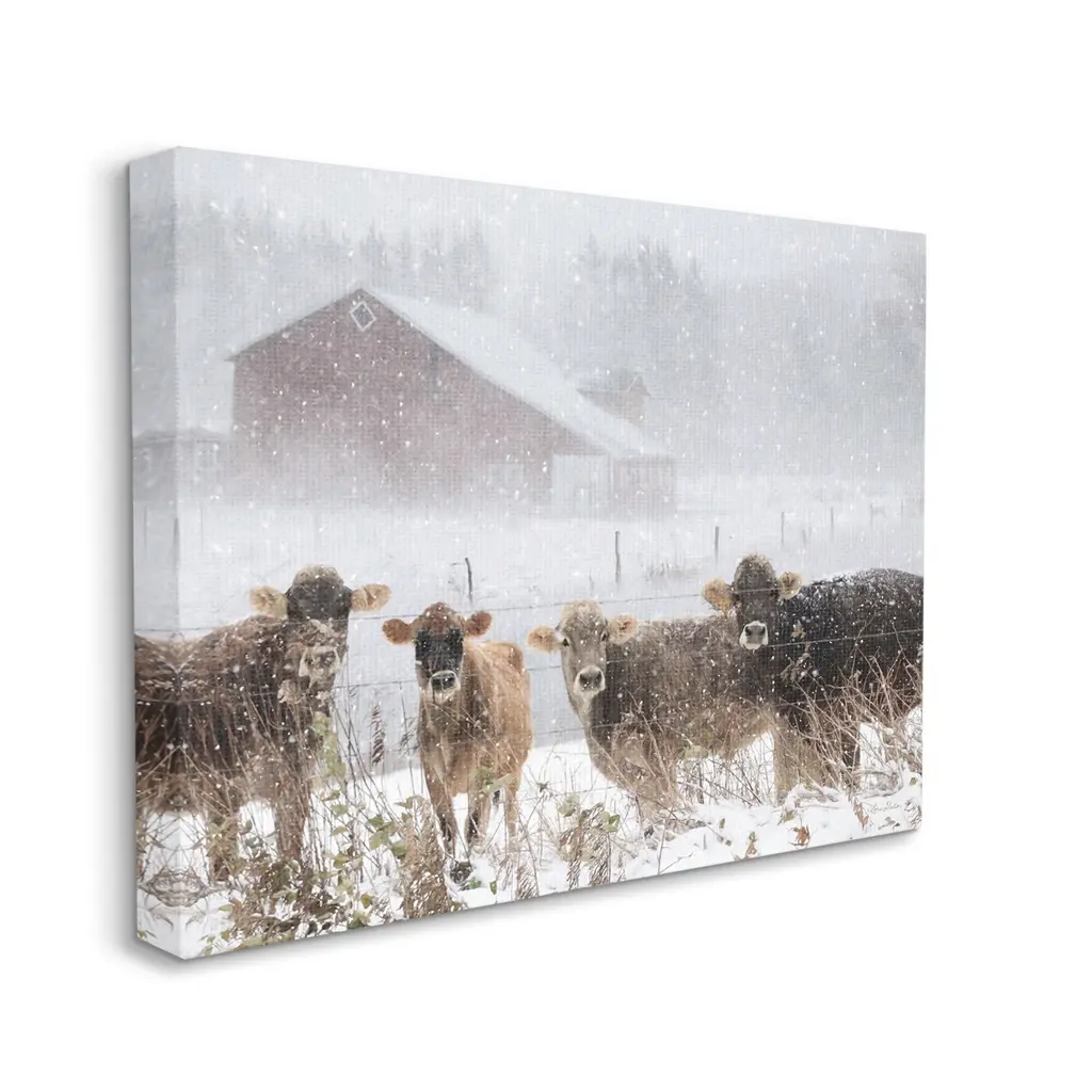 Proudly made in the USA, Our stretched canvas is created with the highest standards. We use only the highest quality inks and canvas on our in house Mimaki printers, and then hand cut and stretch each piece over a 1.5 inch thick wooden frame for hanging. The art comes ready to hang with no installation required.Features: Wall Art is Ready to Hang - No Installation or Hardware Needed. For Easy Set Up Lean or Layer Artwork on Shelf or Against Wall.Our stretched canvas is created with the highest standards. We use only the highest quality inks and canvas on our in house Mimaki printers, and then hand cut and stretch each piece over a 1.5 inch thick wooden frame for hanging. Made In USA.Artwork Relates To: Nature; Outdoors; Blizzard; Snow; Storm; Winter; Animal; Mammal; Cow; Cattle; Weather; Ice; Design by Lori Deiter