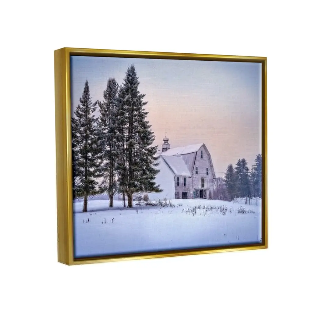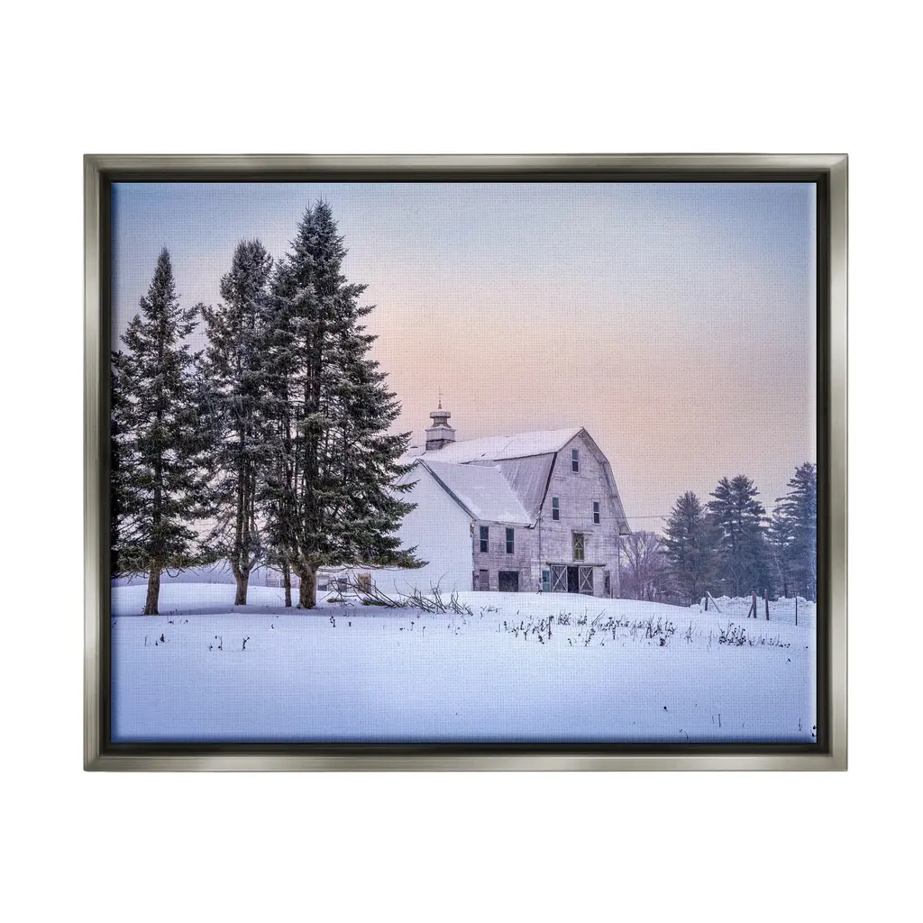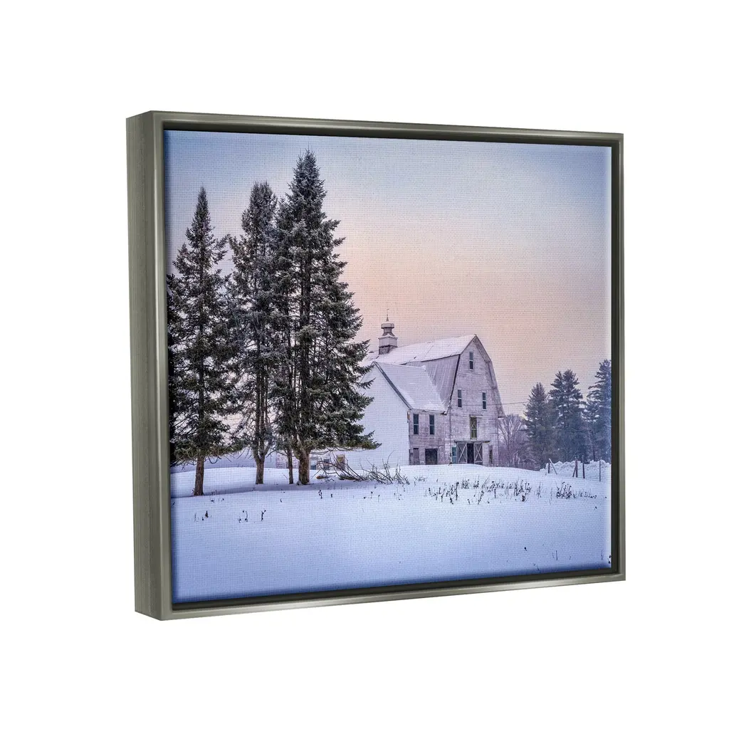 Elevate your home or office to the next level with Stupell Framed Floating Canvas Wall Art. Our premium hand-stretched canvas is mounted securely into a sturdy lightweight frame. The museum-style gap between the wrapped canvas and the box frame gives the illusion of floating artwork. Stupell Wall Art is made in the USA.Features: Dimensions: 21 x 1.7 x 17 Frame, 20 x 1.5 x 16 Canvas ArtFloating Frame Sizes Include Standard: 21 x 1.7 x 17 Oversized: 31 x 1.7 x 25Wall Art is Ready to Hang - No Installation or Hardware Needed. For Easy Set Up Lean or Layer Artwork on Shelf or Against Wall.Our elevated 1.7" Thick Floating Frame is the perfect complement to our canvas style Wall Art. We use only the highest quality inks in house with industry leading printing solutions. Canvas is hand stretched over a durable wood foundation and then mounted securly into a Modern Box Frame. Made in the USA.Artwork Relates To: Pine, Nature, House, Countryside, Rural, Scenery, Snow, Winter, Farm, BarnDesign by Rick Berk